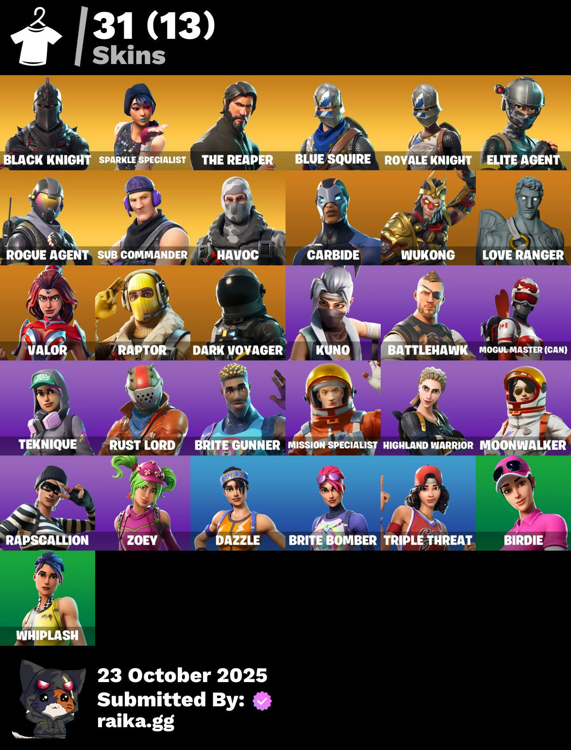 [PC/PSN/XBOX] 31 skins | Black Knight | FRESH| Sparkle Specialist | The Reaper | Blue Squire | Royale Knight | Elite Agent | Rogue Agent | Sub Commander | Havoc | 50 VB