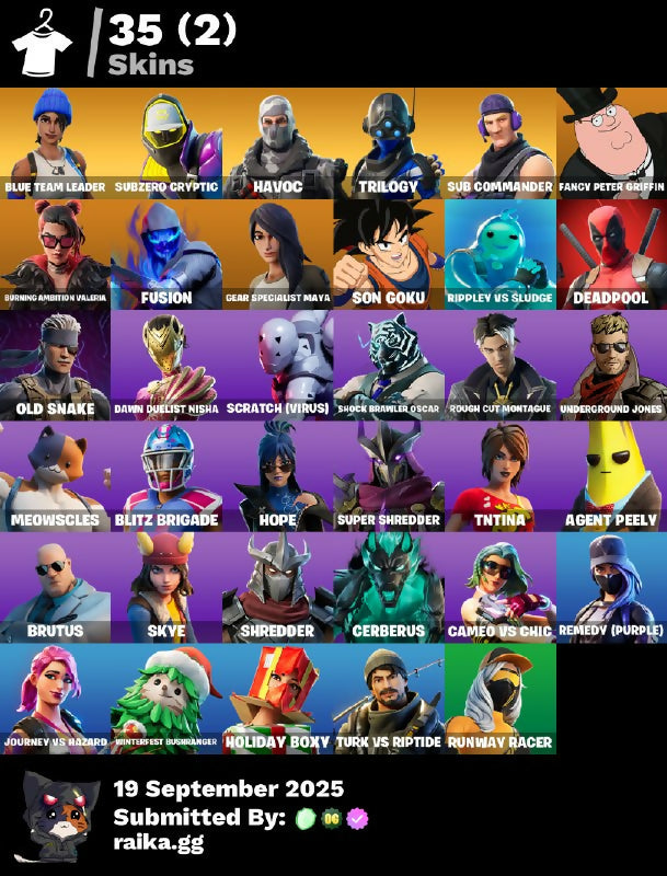 [PC/PSN/XBOX] 35 skins | Blue Team Leader | Subzero Cryptic | Havoc | Trilogy | Sub Commander | Fancy Peter Griffin | Burning Ambition Valeria | Fusion | 250 VB #491