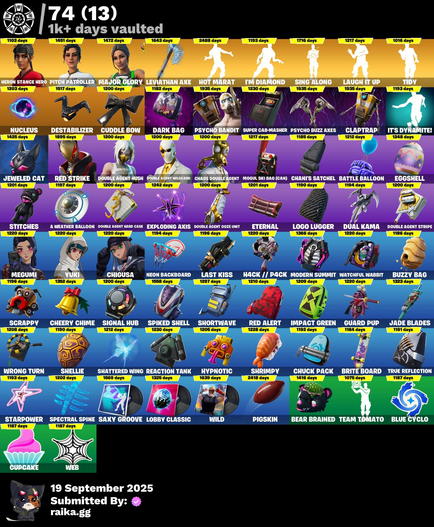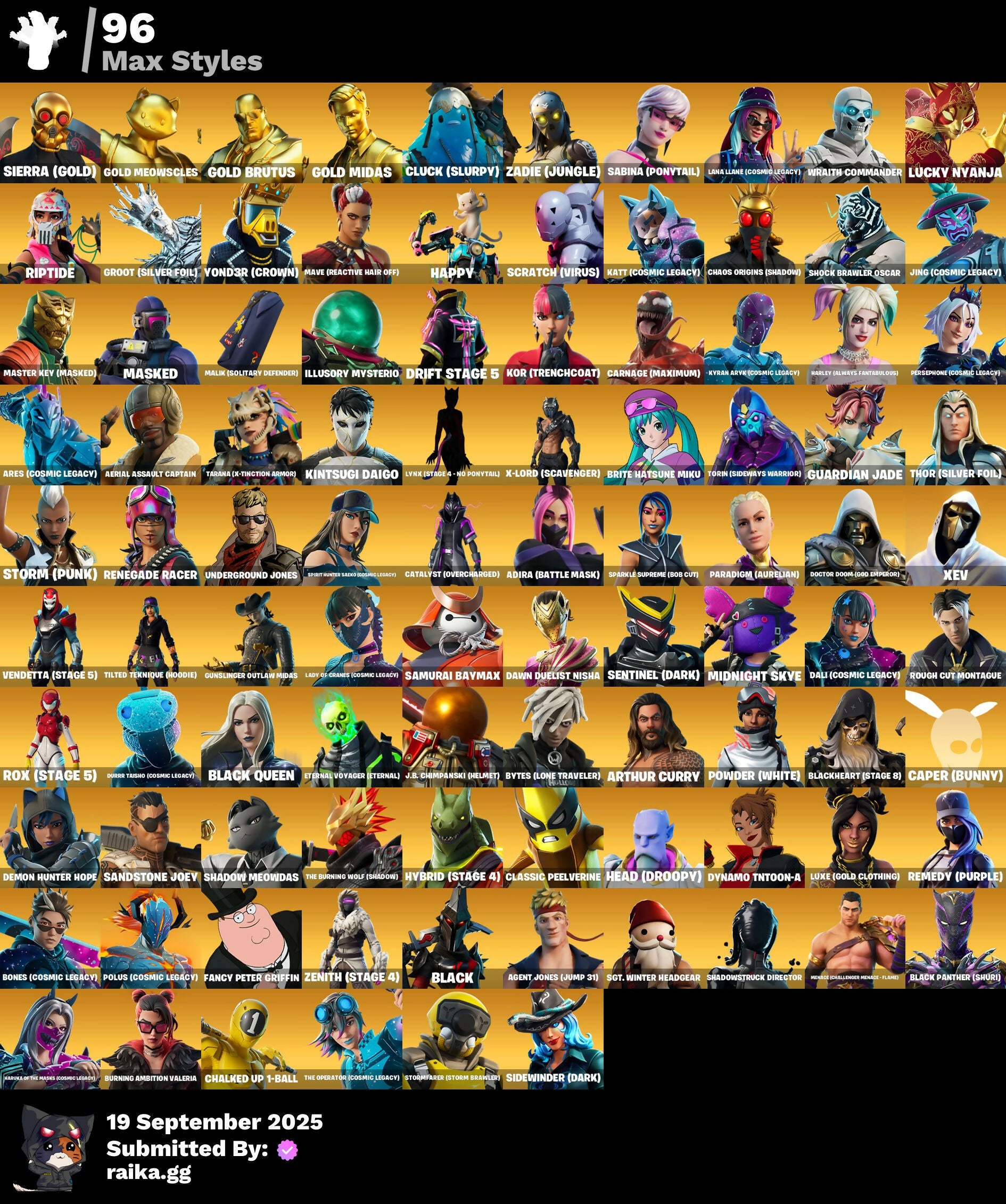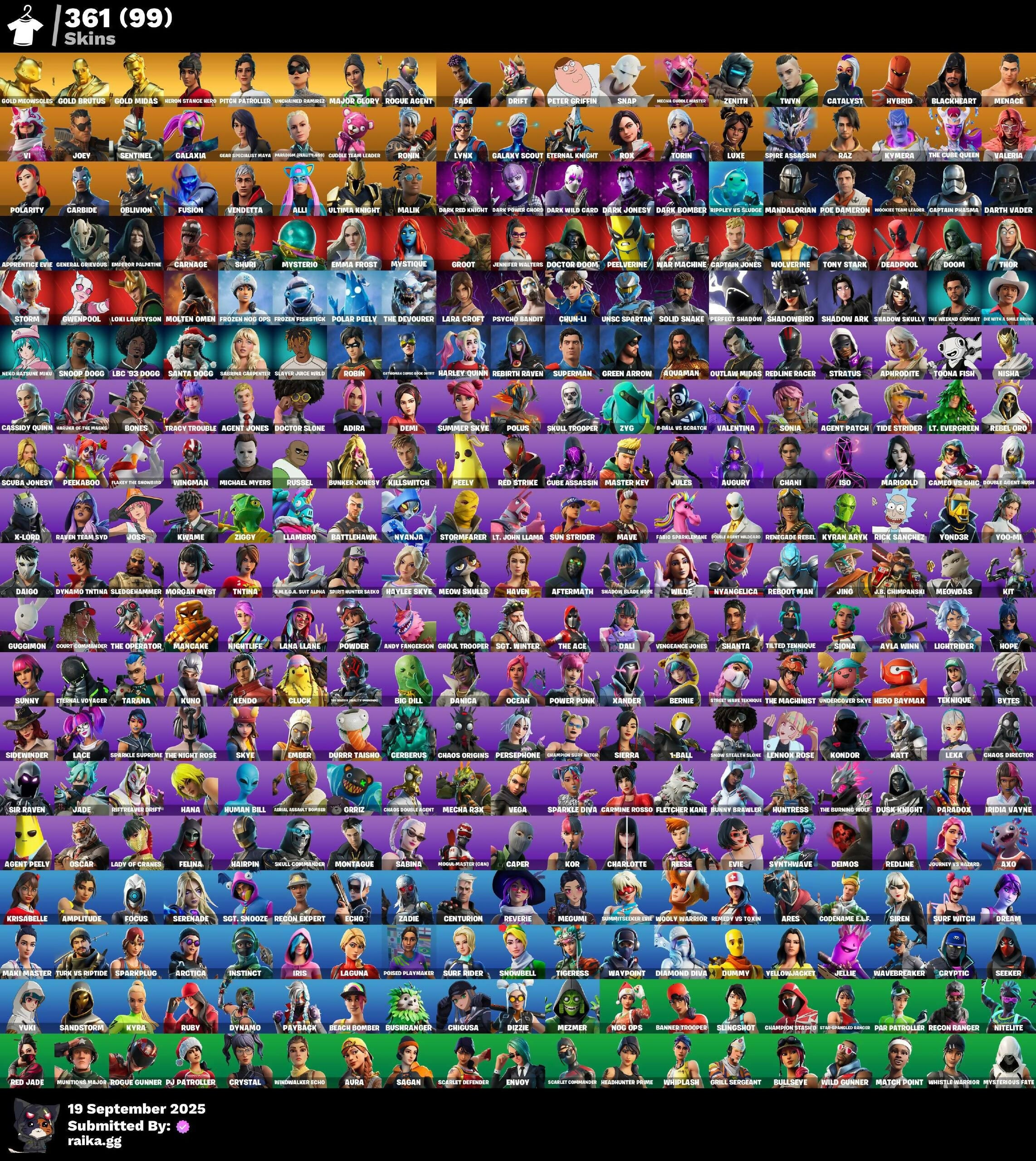[PC/PSN/XBOX] 361 skins | Gold Meowscles | Gold Brutus | Gold Midas | Heron Stance Hero | Pitch Patroller | Unchained Ramirez | Major Glory | Rogue Agent | 1020 VB / Fortnite