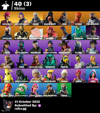 [PC/PSN/XBOX] 40 skins | Arcane Vi | Sub Commander | Havoc | Blackheart | Ruin | Hybrid | The Scientist | Catalyst | Ultima Knight | Peter Griffin | Valeria | 600 VB