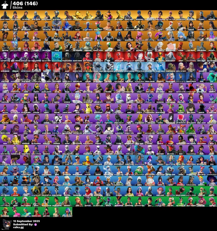 [PC/PSN/XBOX] 406 skins | OG STW | Black Knight | MERRY MINTY AXE | LEVIATHAN AXE | Blue Squire | Royale Knight | Elite Agent | Travis Scott | Gold Meowscles | 300 VB
