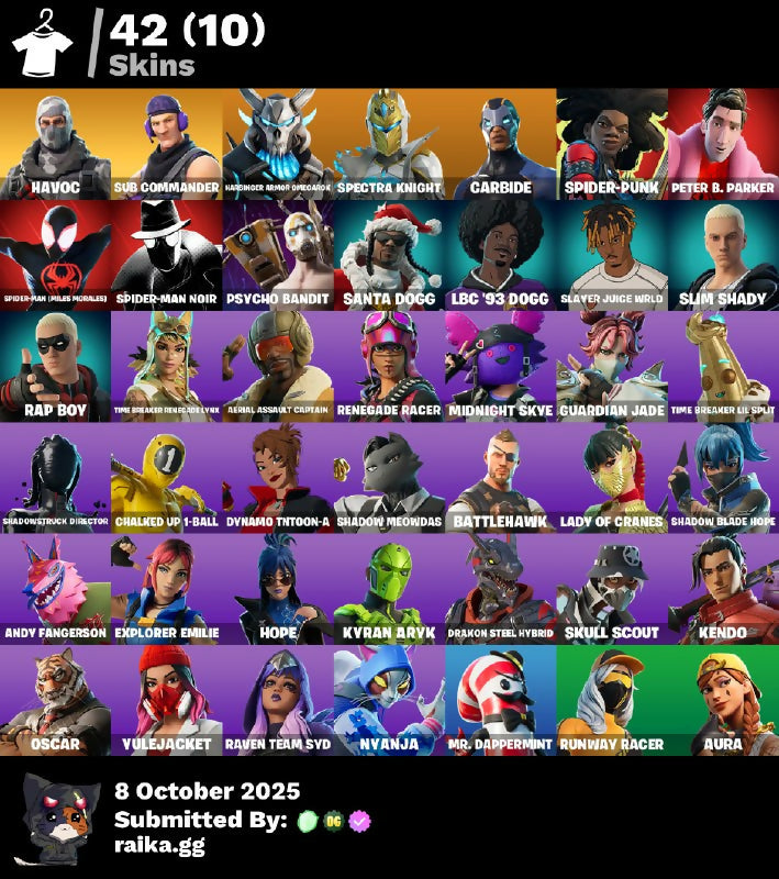[PC/PSN/XBOX] 42 skins | Havoc | Sub Commander | Harbinger Armor Omegarok | Spectra Knight | Carbide | Spider-Punk | Peter B. Parker | 350 VB #522