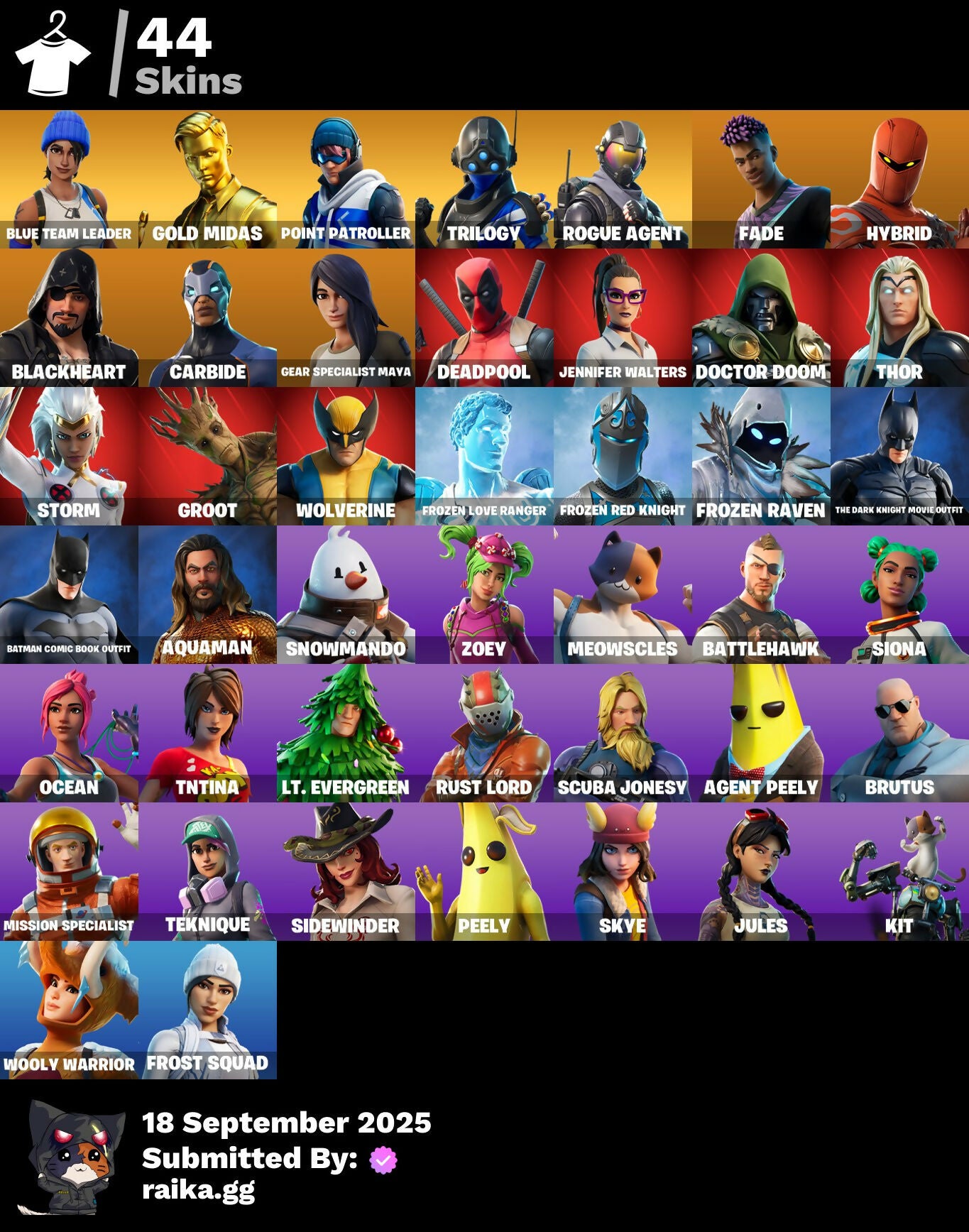 [PC/PSN/XBOX] 44 skins | Blue Team Leader | Gold Midas | Point Patroller | Trilogy | Rogue Agent | Fade | Hybrid | Blackheart | Carbide | 650 VB / Fortnite