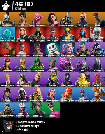 [PC/PSN/XBOX] 46 skins | Sentinel | Raz | Cuddle Team Leader | Rox | Eternal Knight | Catalyst | Fade | Rippley vs Sludge | Thor | Doctor Doom | Tony Stark | 800 VB