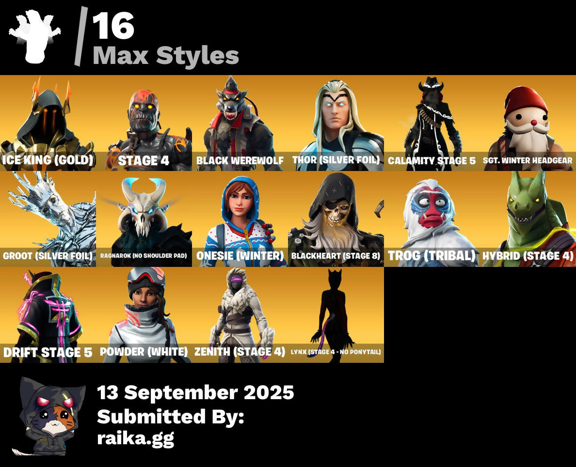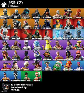 [PC/PSN/XBOX] 52 skins | Eon | A.I.M. | Zenith | Enforcer | Blackheart | Ragnarok | Calamity | Hybrid | The Prisoner | Dire | Drift | Lynx | The Ice King | 200 VB / Fortnite