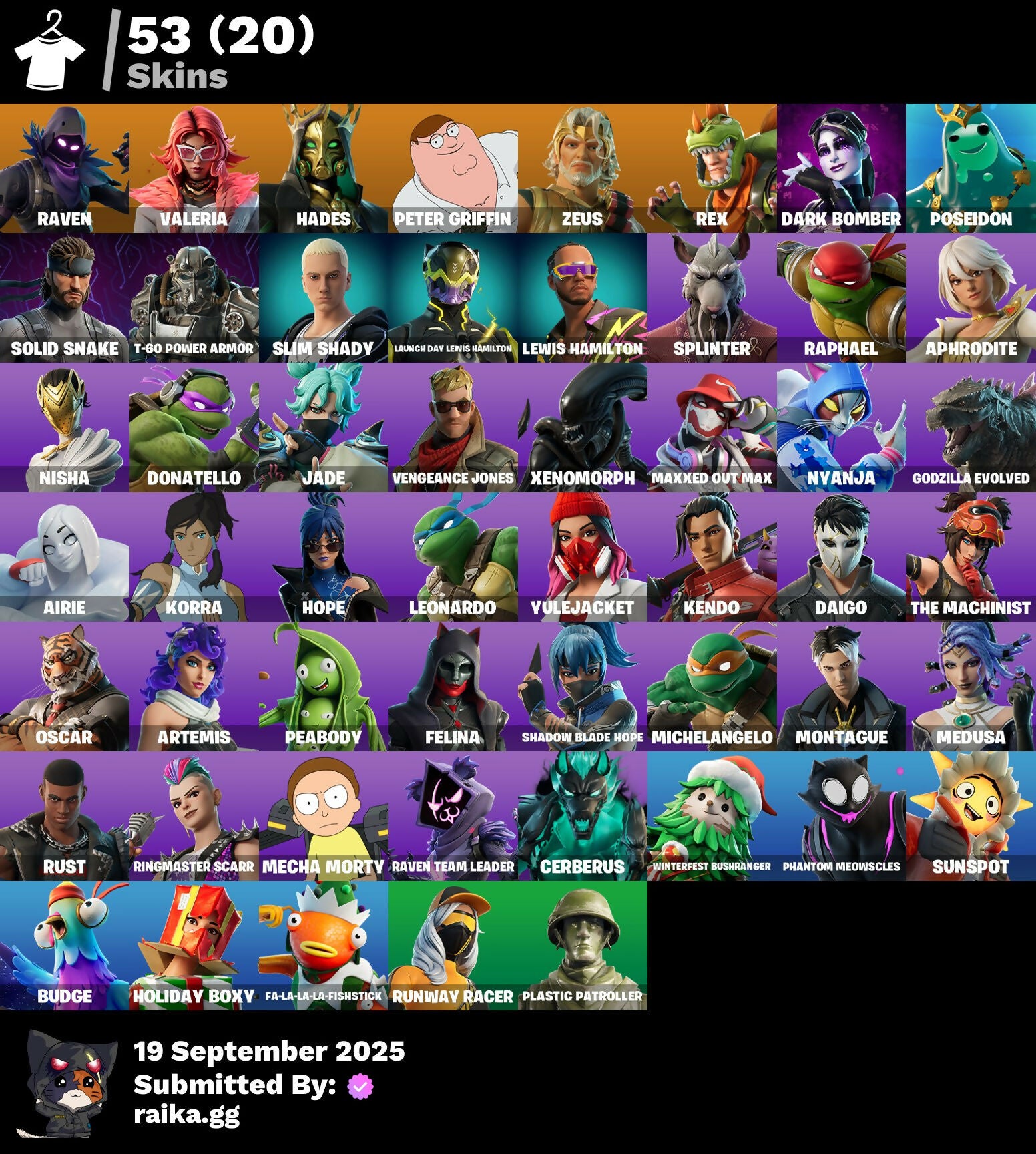 [PC/PSN/XBOX] 53 skins | Raven | Valeria | Hades | Peter Griffin | Zeus | Rex | Dark Bomber | Poseidon | Solid Snake | T-60 Power Armor | Slim Shady | 350 VB / Fortnite