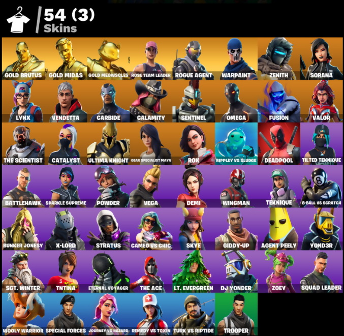 [PC/PSN/XBOX] 54 SKINS | OG STW | Gold Brutus | Gold Midas | Gold Meowscles | Rogue Agent | Zenith | Sorana | Lynx | Vendetta | Carbide | Calamity | Sentinel