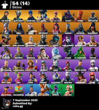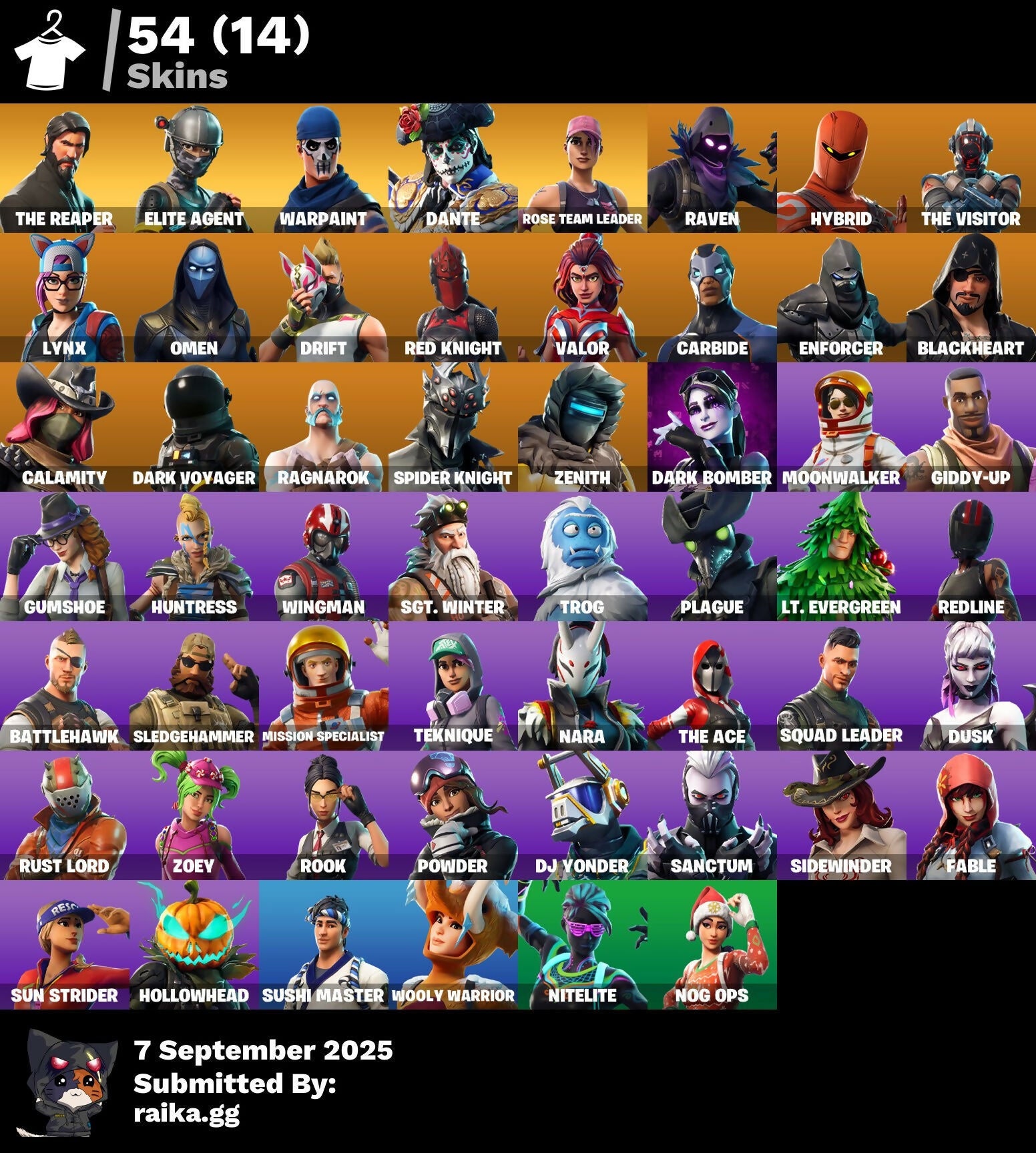 [PC/PSN/XBOX] 54 skins | OG STW | The Reaper | Elite Agent | Dante | Raven | Hybrid | The Visitor | Lynx | Omen | Drift | Red Knight | Valor | Carbide | 2000 VB / Fortnite