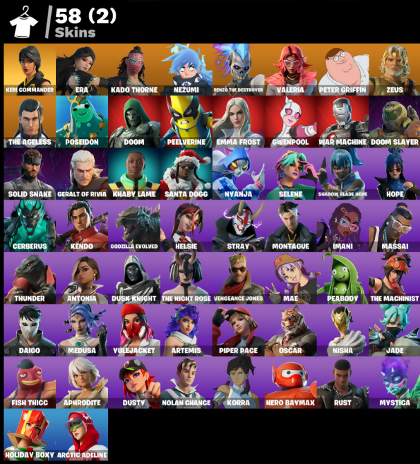 [PC/PSN/XBOX] 58 SKINS | Keri Commander | Era | Kado Thorne | Nezumi | Renzo the Destroyer | Valeria | Peter Griffin | Zeus | The Ageless | Poseidon | Doom | 1400 VB