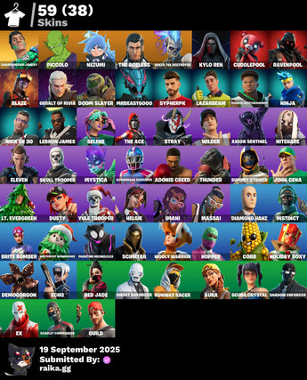 [PC/PSN/XBOX] 59 skins | Championship Jonesy | Piccolo | Nezumi | The Ageless | Renzo the Destroyer | Kylo Ren | Cuddlepool | Ravenpool | Blaze | 0 VB / Fortnite
