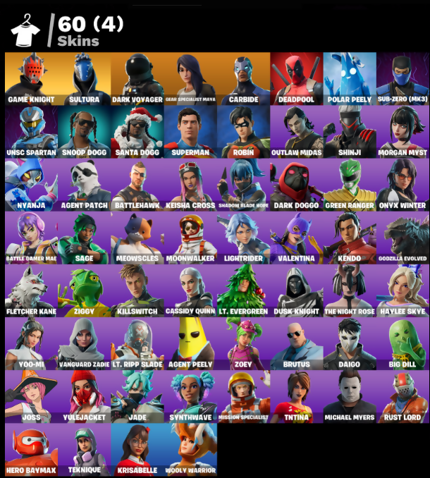 [PC/PSN/XBOX] 60 SKINS | Game Knight | Sultura | Dark Voyager | Gear Specialist Maya | Carbide | Deadpool | Polar Peely | Sub-Zero (MK3) | UNSC Spartan