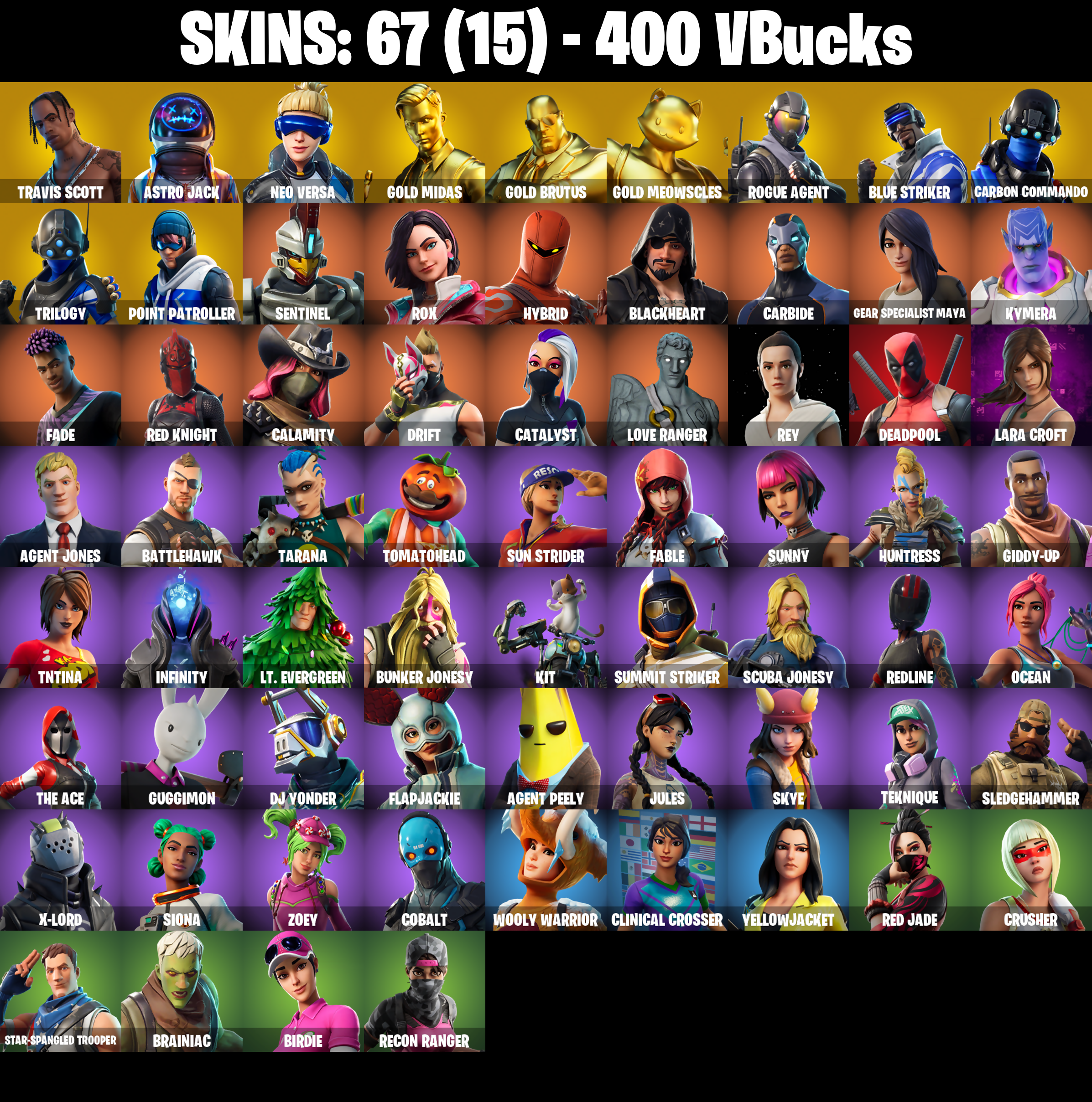 PC/PSN/XBOX |67 skins | Travis Scott | Astro Jack | Neo Versa | Gold Midas | Gold Brutus | Gold Meowscles | Rogue Agent | Blue Striker | #B648