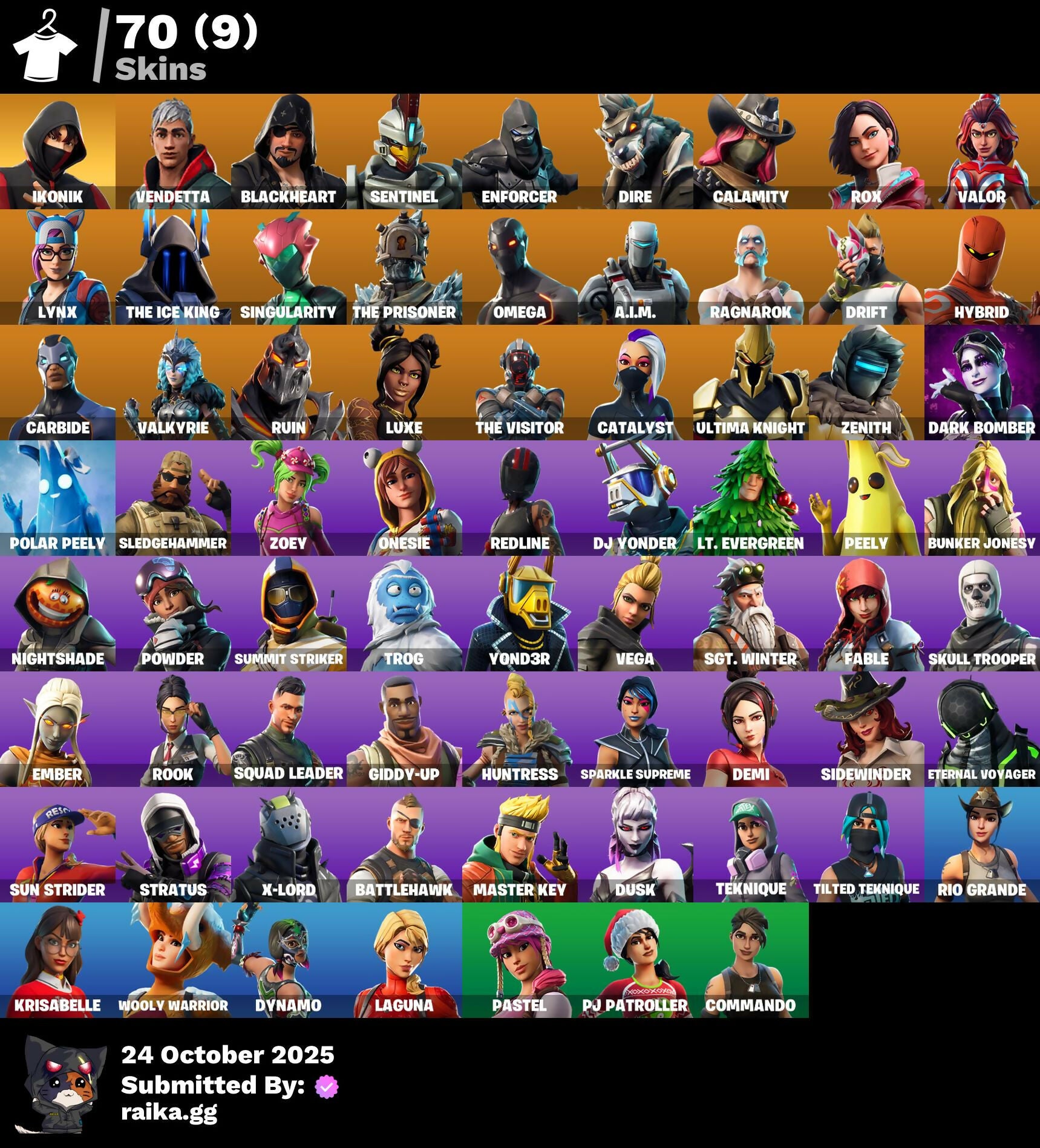 [PC/PSN/XBOX] 70 skins | IKONIK | Vendetta | Blackheart | Sentinel | Enforcer | Dire | Calamity | Rox | Valor | Lynx | The Ice King | Singularity | 300 VB