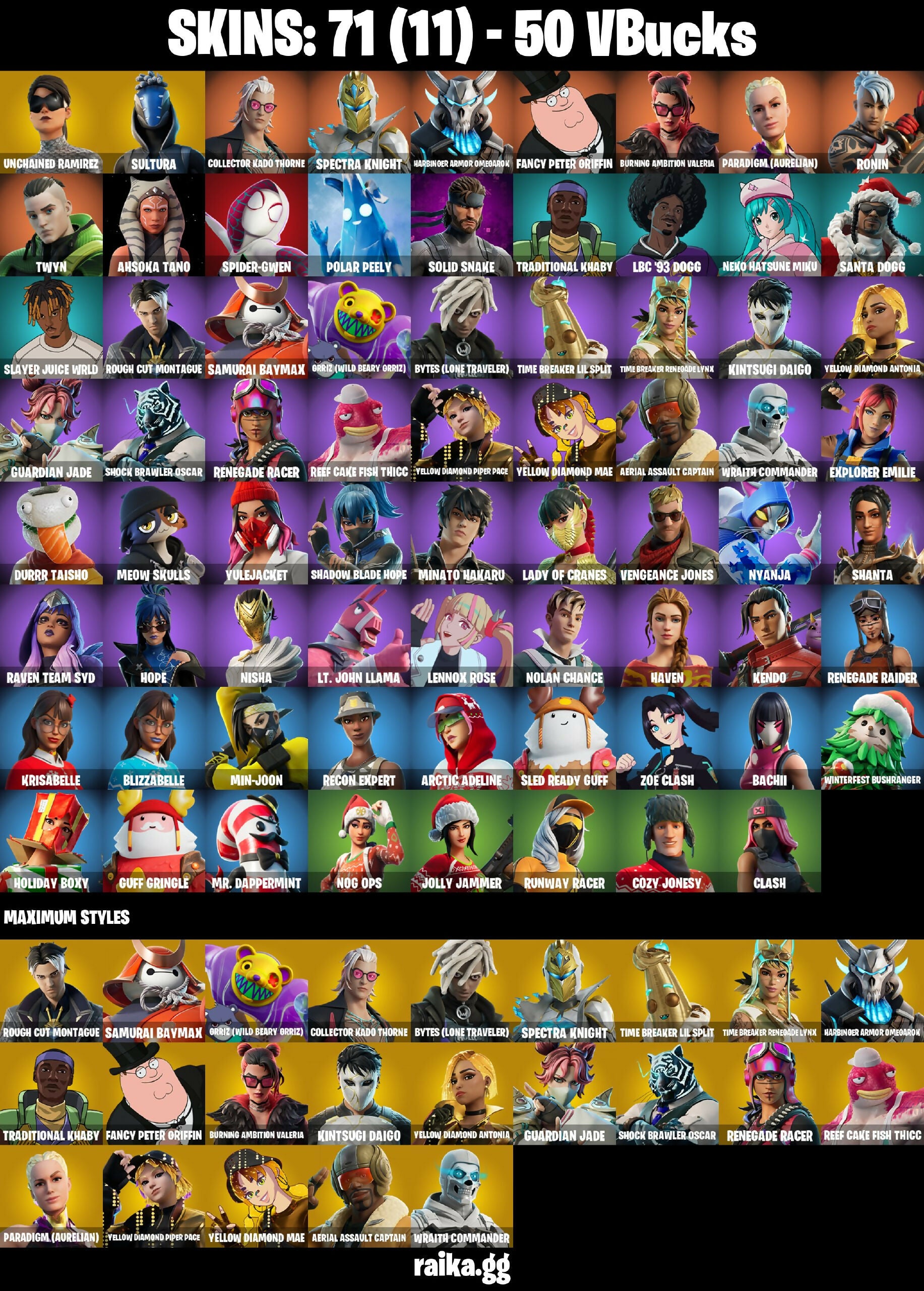 [PC/PSN/XBOX] 71 skins | Renegade Raider | Unchained Ramirez | Sultura | Collector Kado Thorne | Spectra Knight | Harbinger Armor Omegarok | 50 VB