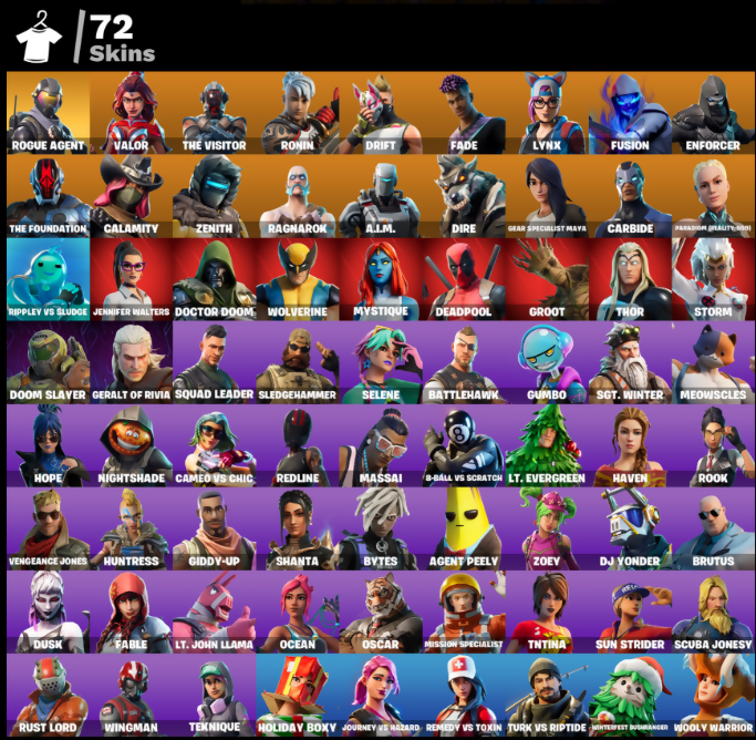 [PC/PSN/XBOX] 72 SKINS | Rogue Agent | Valor | The Visitor | Ronin | Drift | Fade | Lynx | Fusion | Enforcer | The Foundation | Calamity | Zenith | Ragnarok | 2000 VB