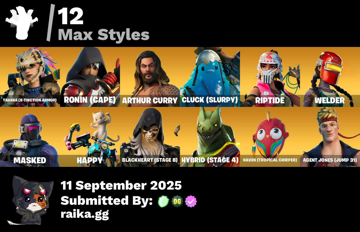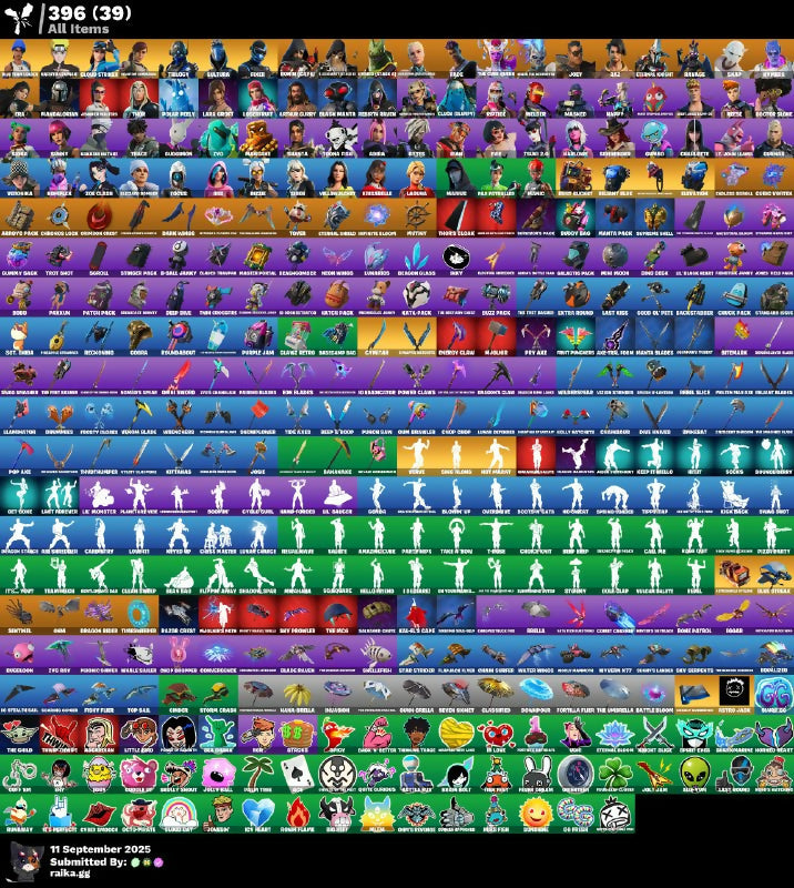 102, 1800, Aarav, Abyss, Adira, Agent Jones (Jump 31), Alloy, Amazing Dude, Ambush, Ampersand (Kyot), Arcana, Aristocratic Robes, Armory, Arthur Curry, Arthur Gurney, Assault Archer, Astra, Astro Jack, Astroworld Cyclone, Aviator, Backstabber, Ball-Gem Chest, Benghamside, Billions Black Eye, Black Bundle, Black Manta, Blackheart (Stage 6), Blackheart (Stage 8), Blaze Charge, Blazent Blue, Blizzard Bomber, Blow, Blow-U, Blue Hoodie, Blue Max, Blue Streak, Blue Team Leader, Boney Guy, Boomling Glass, Bootstraps, Born Hornet, Breakerway (Kyot), Breakneck, Brisk Breeze, Brite (Tropical Crimson), British Spanner, Buddy Bag, Bull Bandit, Bytes, Calamari, Call Me Back, Cameo, Cedric Vortex, Charlie, Charlotte, Chicken Supply, Chill Triple Bridge, Chip Drop, Chloe (Kyot), Cibo Master, Cinvalor, Clash Trooper, Cleaning Robot, Cloud Strider, Cloud Striker, Cluck (Kyot), Cluck (Slurpy), Clutch Pack, Cobalt Overdrive, Commander Hale (Kyot), Conor, Coolstuff, Corvus Askran, Cymitar, Dad's Ancient, Dang Buster, Daredevil, Dark Bomber, Dark Shaolin, Dawns Tides, Deadbeat, Deadeye, Desker, Dino Desk, Disguise Pack, Dison X7, Dizzie, Doctor Slone, Doubt, Dragon Start, Draw Shot, Drone, Drumbeats, Dust, Echo, Elevation, Endgame Bundle, Endless Scroll, Era, Eternal Knight, Evie, Evo, Expires, Fable, Fade, Fatal Rock, Fixer, Focus, Foggy Shadow, Full Shield, GSpeedy, Galactic Pack, Get Down, Glitchpop, Gold Pack, Good Ol' Pete, Grain, Greatroll, Green Bull, Grey Serpents, Guggimon, Gugugudon, Gumbo, Gummy Sack, Gun, Gunnar, Hand Forces, Happy, Harlowe, Haven (Tropical Chirper), Heckers, Hey Yo, High Velocity, Hoopster, Hot Marat, Hybrid (Stage 4), Ice Monster, Igloo, Iris, Jennifer Walters, Jet, Jim Bolt, Joey, Jonesy, Jotham, Justice's Elixir, Kakashi Hatake, Keep Dive, Kick Back, King's Stash, Komplex, Krisabelle, Kymera, Laguna, Lala, Lambo, Lara Croft, Last Forever, Last Kiss, Little Epic, Lonely, Looks, Loserfruit, Lt. Evergreen, Lt. John Llama, Lunar Explorer, Lunarboss, Mainsheer, Mancake, Mandalorian, Mando (Kyot), Manic, Manta Pack, Marius, Mashed, Masked, Master Polka, Mastiff, Maximilian, Megaton Kit, Moonlit Heart, Motors, Mr. Horror, Mudflap, Mutiny, Mystique, Naruto Uzumaki, Neon Wings, Newly Added, Night Mask, Nite Nite Racer, Nite Nite Racer Pack, Nite Nite Racer Variant, Nite Nite Slayer, Nylon, Oaklay, Obstinate Taker, Ocean Master, Old Sauce, Omen (Kyot), Only Extra Training, Overkill, P-Base Jacky, P-Funk Percy, P.A.M. Rowdy Rilla, P.I.X., Par Patroller, Paradox (Realtime Egg), Paratrooper, Patton Pack, Percy's Lander, Phantom Commando, Phen Hood, Pill, Pillars, Planex, Planters, Plantslayer (Kyot), Polar Peely, Portal Rush, Prowler Okay, Pry Axe, Pug, Pump Slam, Purple Jam, Raider, Rally, Ravage, Raz, Rebirth Raven, Reese, Reliant Blue, Rell Rell (Kyot), Rex, Rex Return, Rian, Rict Shower, Riptide, Rizzo The Destroyer, Ronin (Cape), Ronin (Kyot), Rook's Deck, Rumble, Rust Bucket, Sack, Sacred Jungle, Salt, Scandalous Ice Cream, Scooter, Seashell Picker, Seta, Seven Foot 3, Shadows, Shanta, Shawty, Shirt? Mellow, Shockpoint, Shredder, Sidewinder, Sing Along, Siona, Siren, Skroll, Skye, Sloopion, Snap, Speedy Lander, Spider Buggy, Sprawl, Spray Painted DJ Yonder, Stands, Star Strider, Steelbeck, Steelblooms, Stephen Shell, Stiggs, Stitching Pack, Stood Body Guard, Storkpilot, Strapal Shield, Strides, Sultura, Sunny, Swag, Swarthawk, Synaptic Hatchets, Take & Throw, Tarana (X-Tinction Armor), Tekabe (1-Function Ammo), Tess, Test Packages, Thankgoing, The Cube Queen, The Guild, Therma Frost, Thor, Thor's Cloak, Thrilltime, Tides Ack, Timebreaker, Tippetty, Toona Fish, Tora, Toys, Trace, Travis, Travis Scott, Trilogy, Troy Shot, Tsuki 2.0, Tuna Lure, Undead Carnage, Urs, Valkyrie, Veronika, Verve, Victor Vendetta, Victoria, Voodoo Salts, Vortex, Vycer, Water Wings, Weapon Cobra, Weatherbond, Welder, Wild Clawollars, Wildwing, Wozzan, Yellowjacket, Zoe Clash, Zoe Claws, Zombie, Zyg