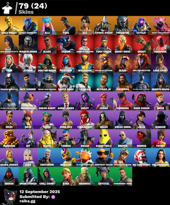 [PC/PSN/XBOX] 79 skins | Gold Midas | Cobalt Snowfoot | Alli | Fade | Raz | Eternal Knight | Predator | Cyclo | Mecha Cuddle Master | Gear Specialist Maya | 100 VB
