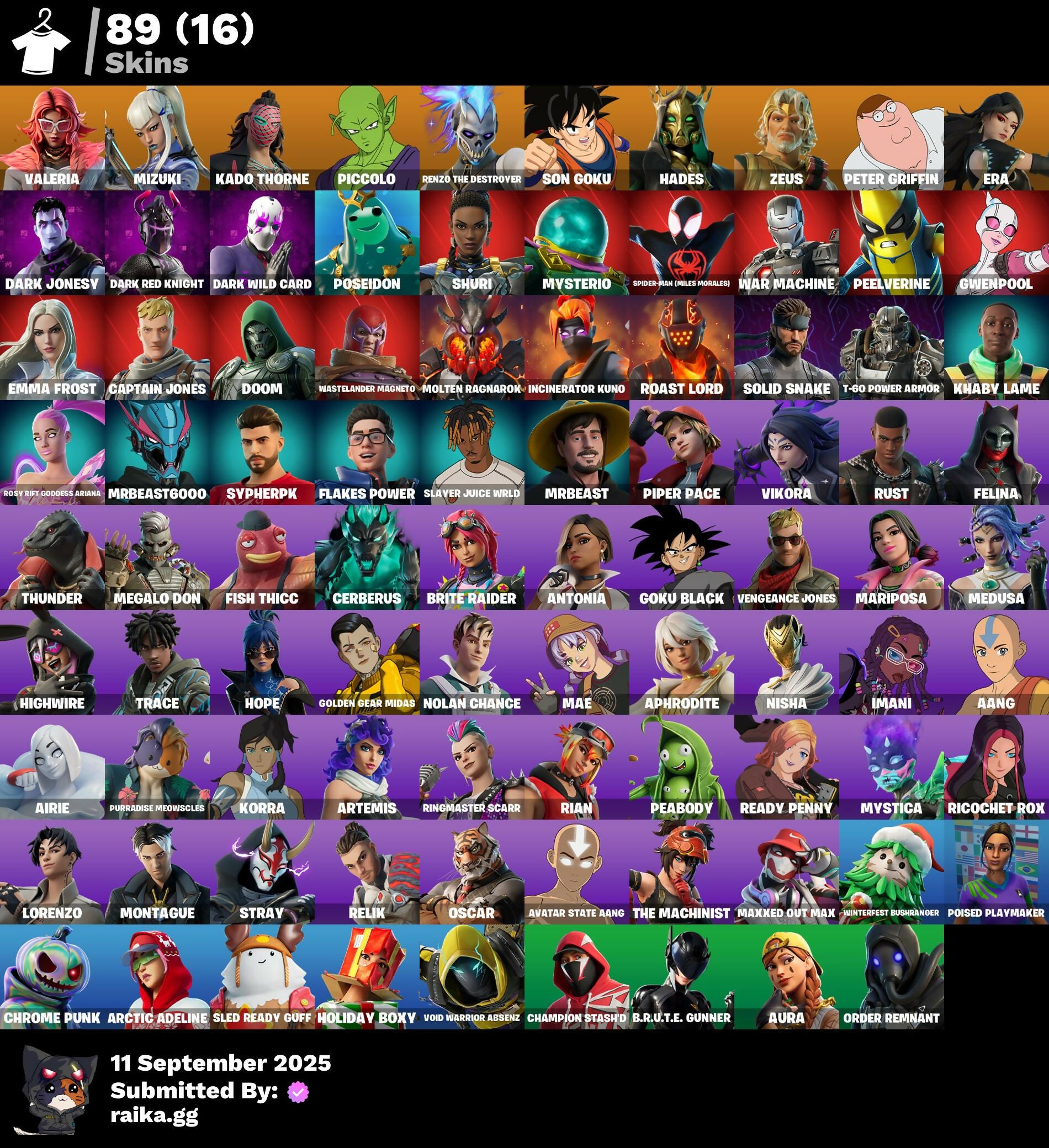 [PC/PSN/XBOX] 89 skins | Valeria | Mizuki | Kado Thorne | Piccolo | Renzo the Destroyer | Son Goku | Hades | Zeus | Peter Griffin | Era | Dark Jonesy | 100 VB