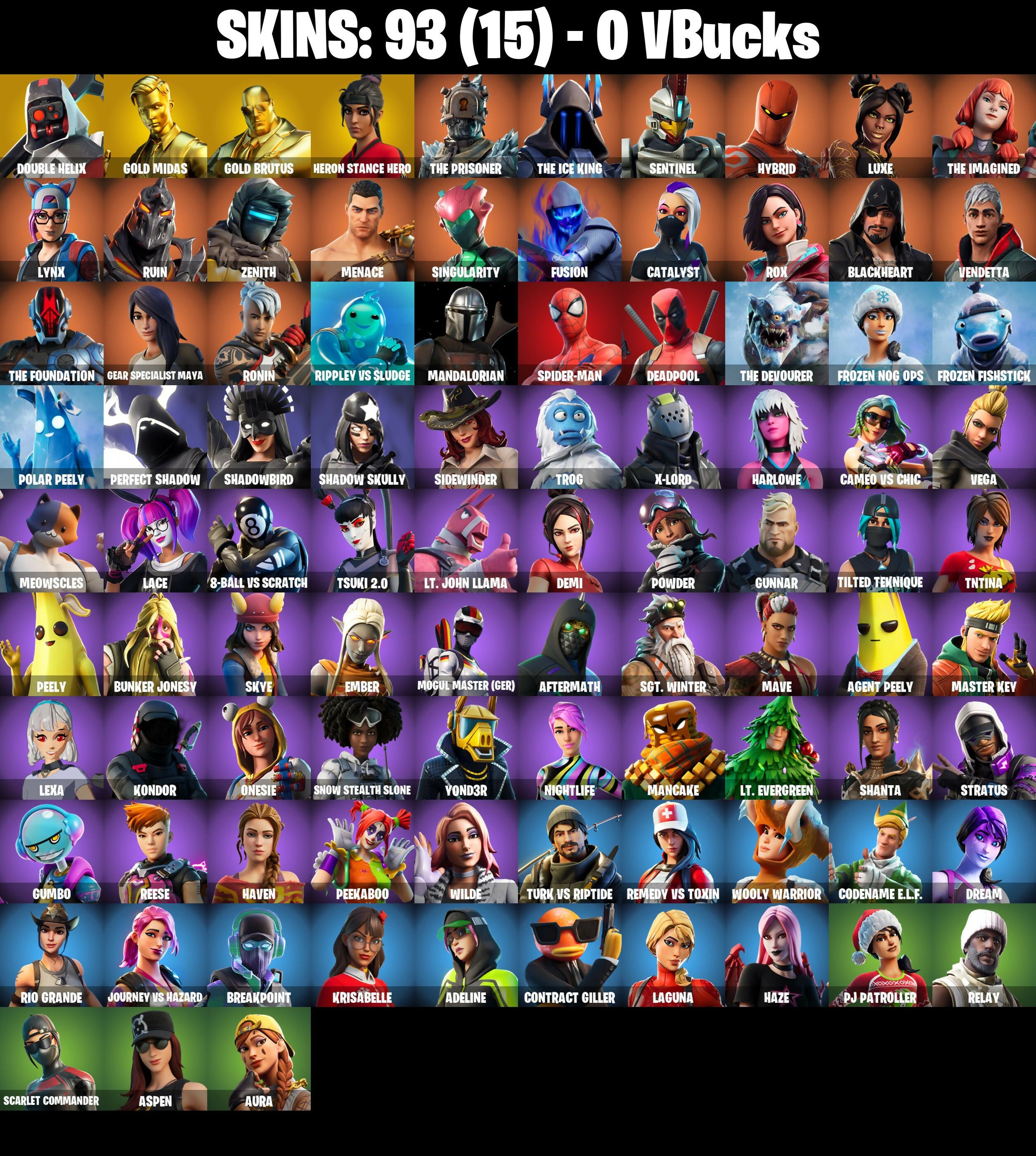 PC/PSN/XBOX |93 skins | Double Helix | Deadpool | Gold Midas | Gold Brutus | Candy Axe | Pinpoint | Rage | Telemetry | Rotor | The Ice King | #B780