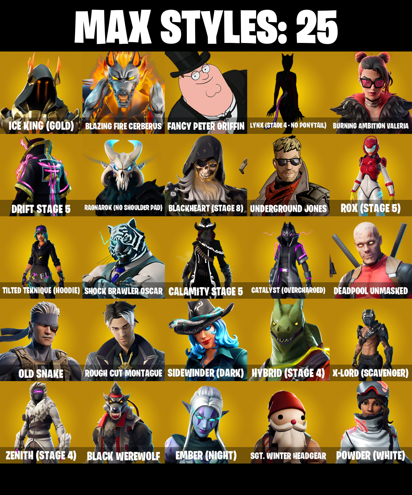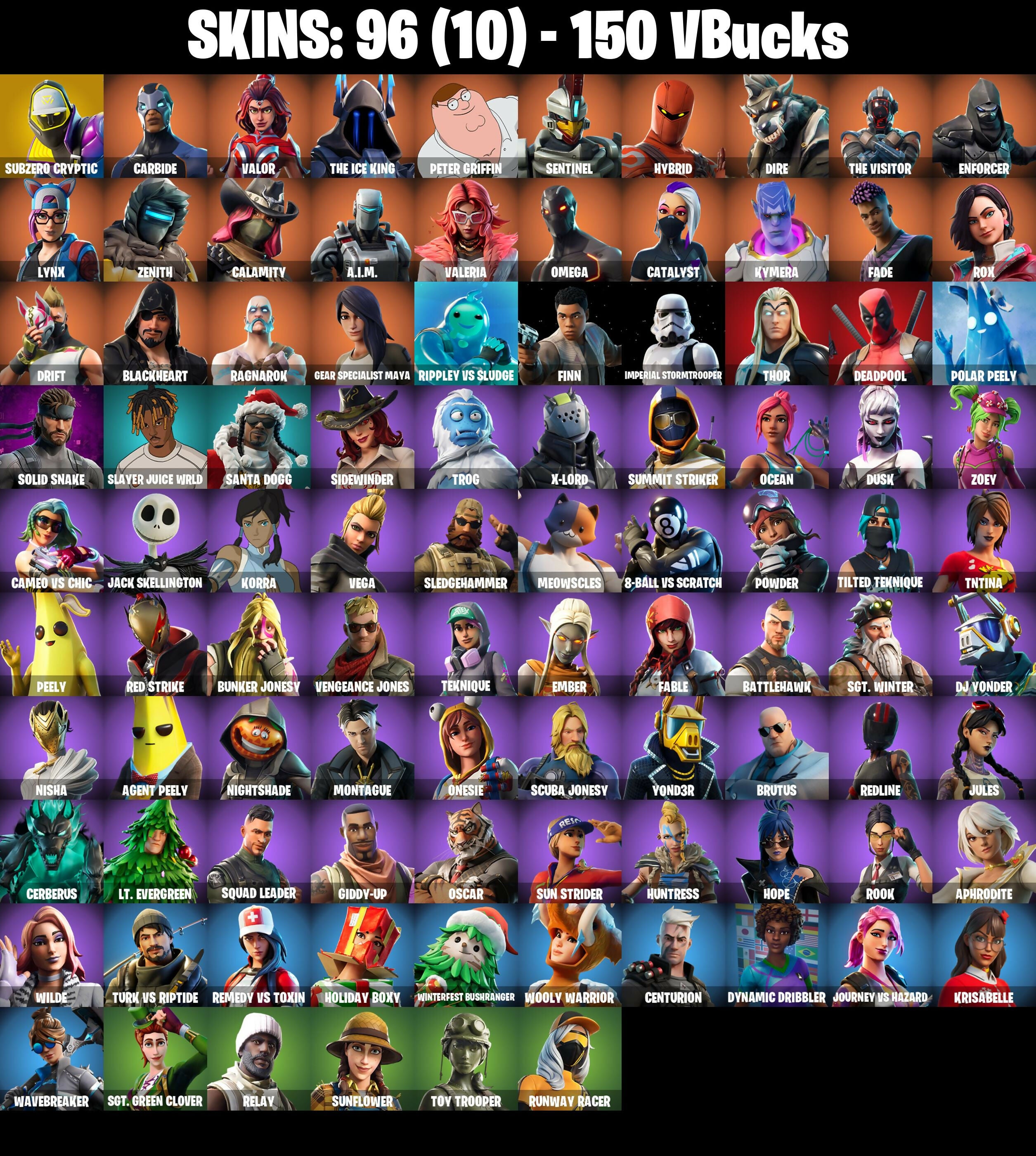 PC/PSN/XBOX |96 skins | Deadpool | Omega | Orange Justice | Drift | Carbide | Ragnarok | Dire | The Ice King | Peely | Ride The Pony | Lynx | #B778