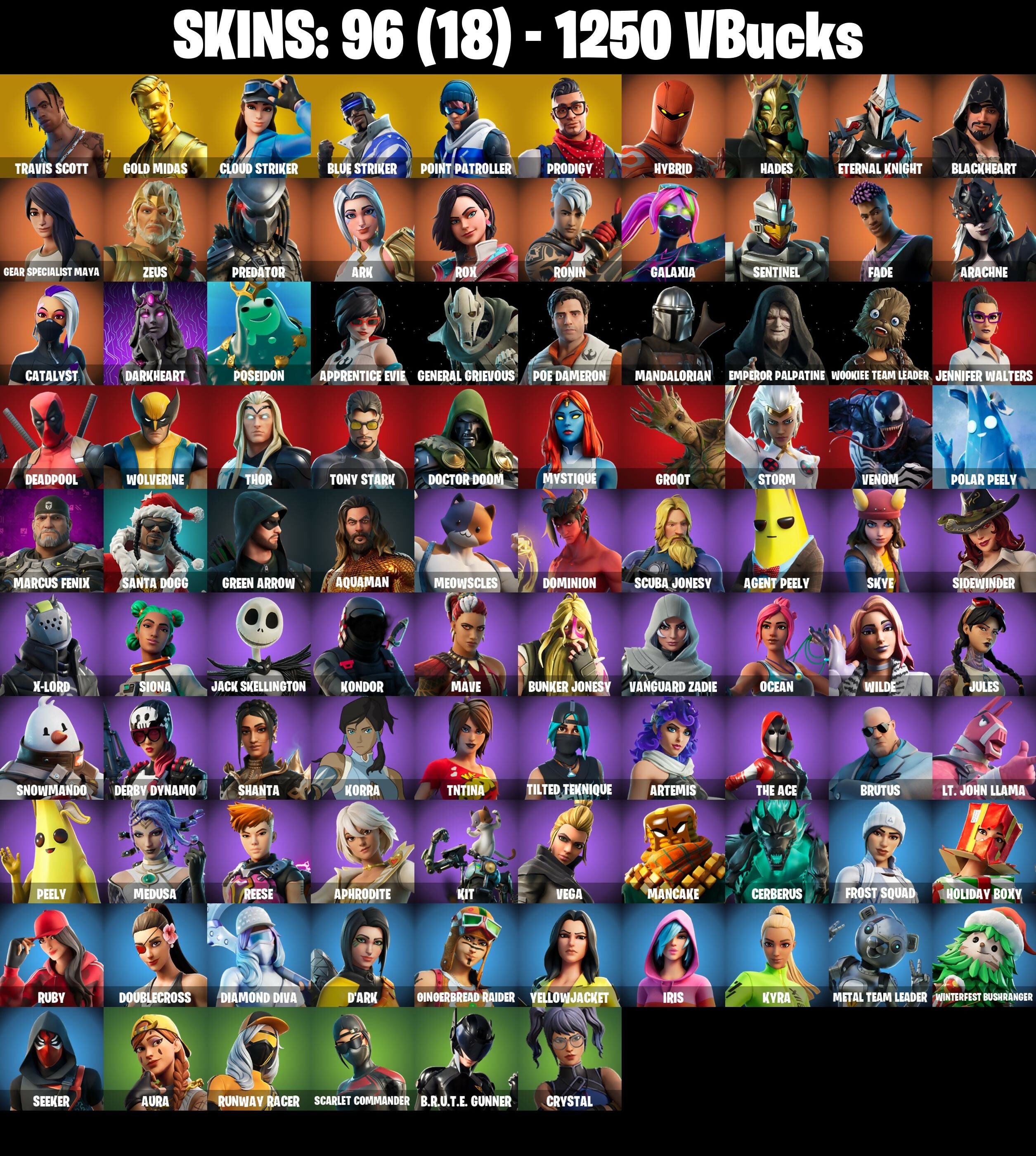 PC/PSN/XBOX |96 skins | Travis Scott | Gold Midas | Cloud Striker | Blue Striker | Point Patroller | Prodigy | Recon Strike | Elevation | #B645