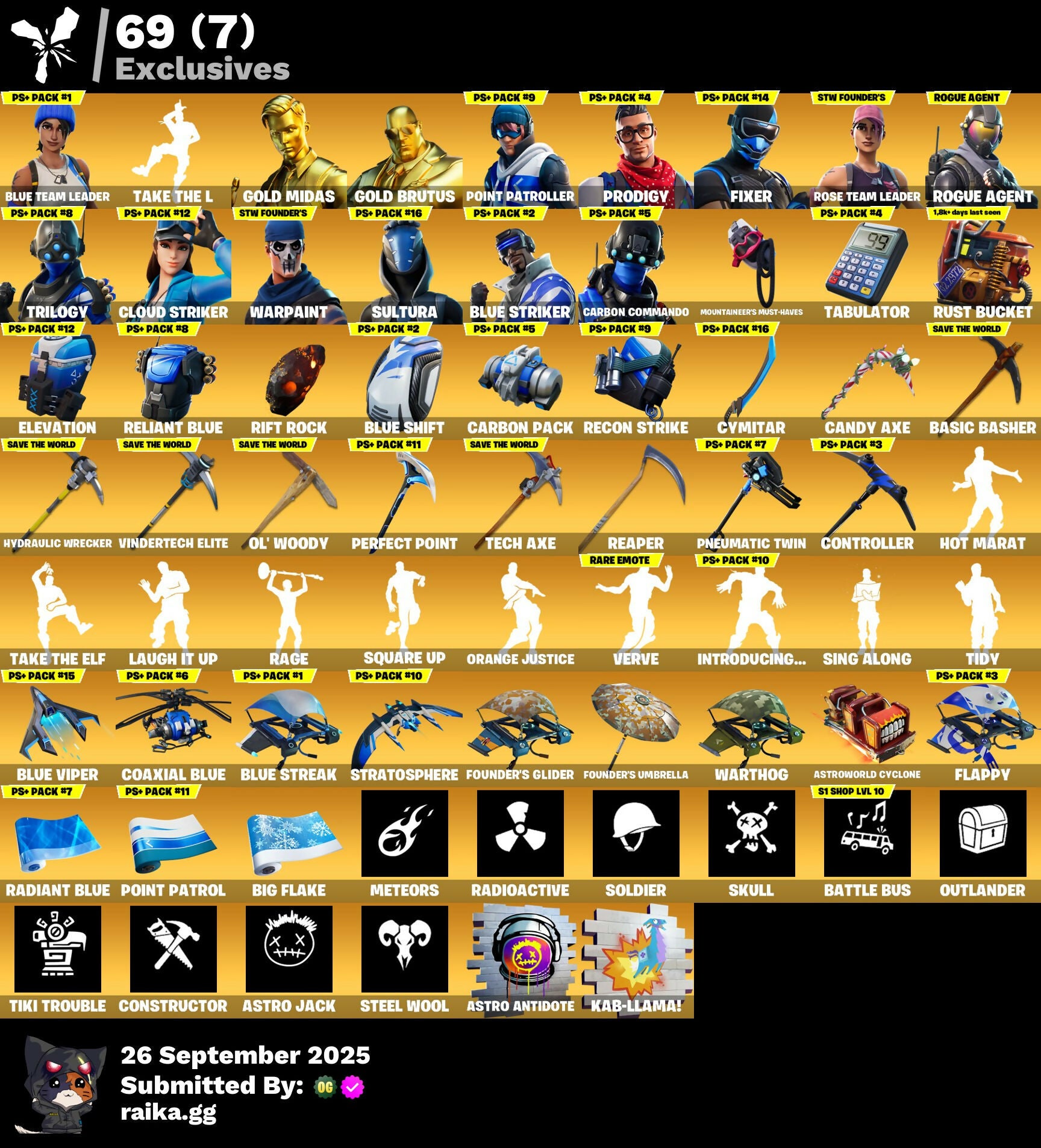 [PC/PSN/XBOX/NITTENDO] 178 skins | OG STW | Blue Team Leader | Gold Midas | Gold Brutus | Point Patroller | Prodigy | Fixer | Rogue Agent | Trilogy | Cloud Striker | 225 VB