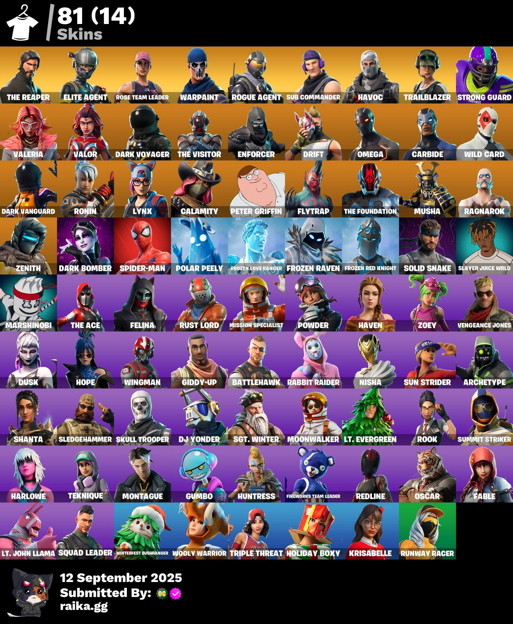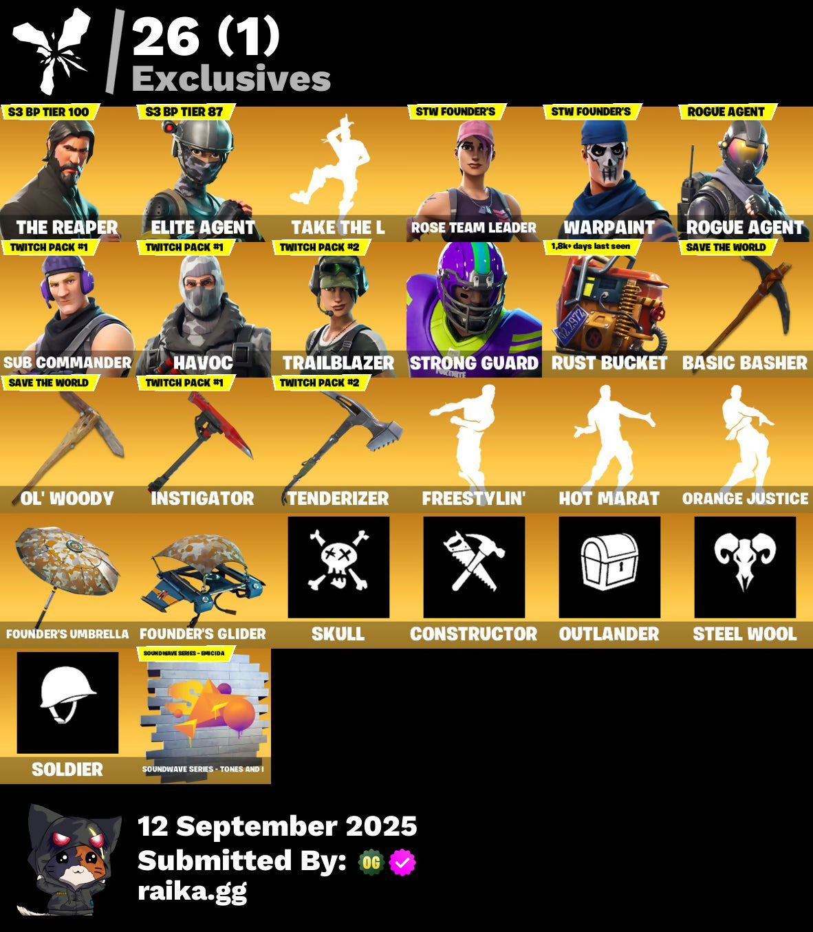 [PC/PSN/XBOX/NITTENDO] 81 skins | OG STW | The Reaper | Elite Agent | Rogue Agent | Sub Commander | Havoc | Trailblazer | Strong Guard | Valeria | Valor | Dark Voyager | 600 VB
