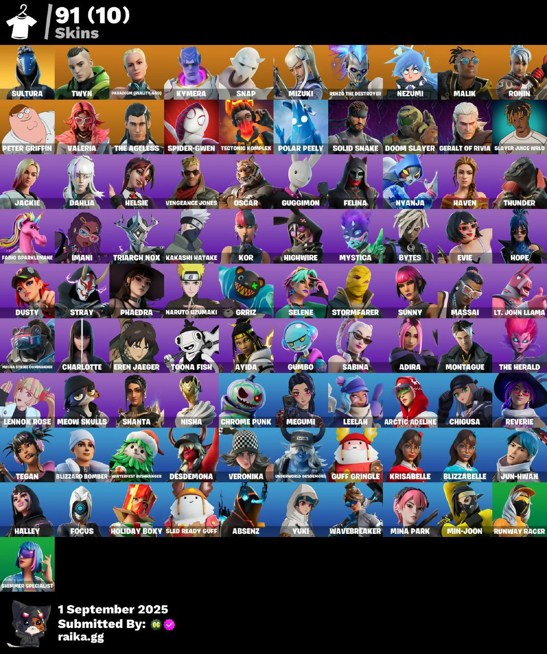 [PC/PSN/XBOX/NITTENDO] 91 skins | Sultura | Twyn | Paradigm (Reality-659) | Kymera | Snap | Mizuki | Renzo the Destroyer | Nezumi | Malik | Ronin | Peter Griffin | 300 VB