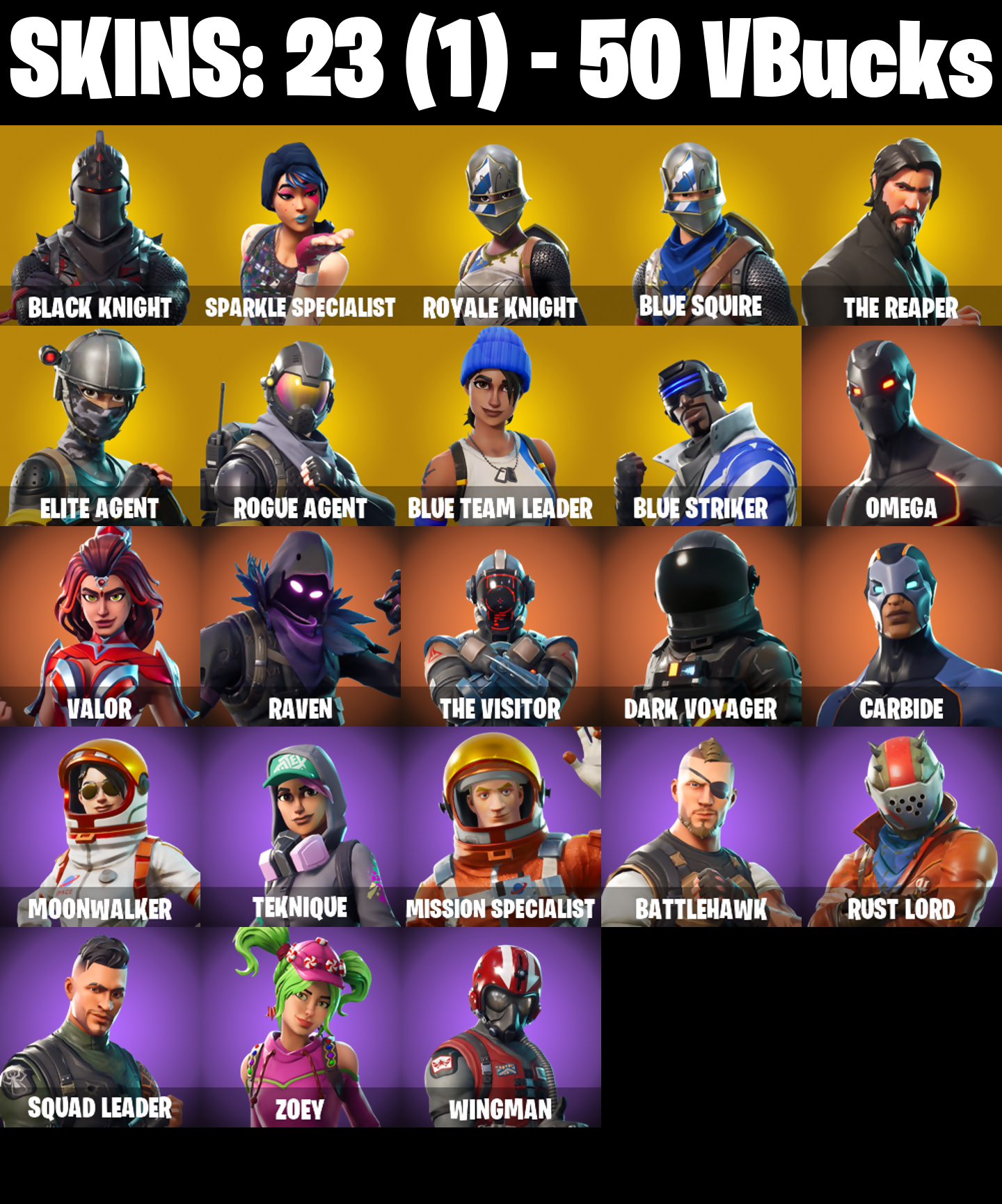 PC/XBOX |23 skins | Black Knight | Sparkle Specialist | Royale Knight | Blue Squire | The Reaper | Elite Agent | Rogue Agent | Blue Team Leader | #B577