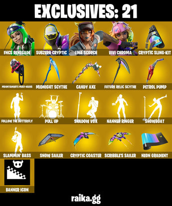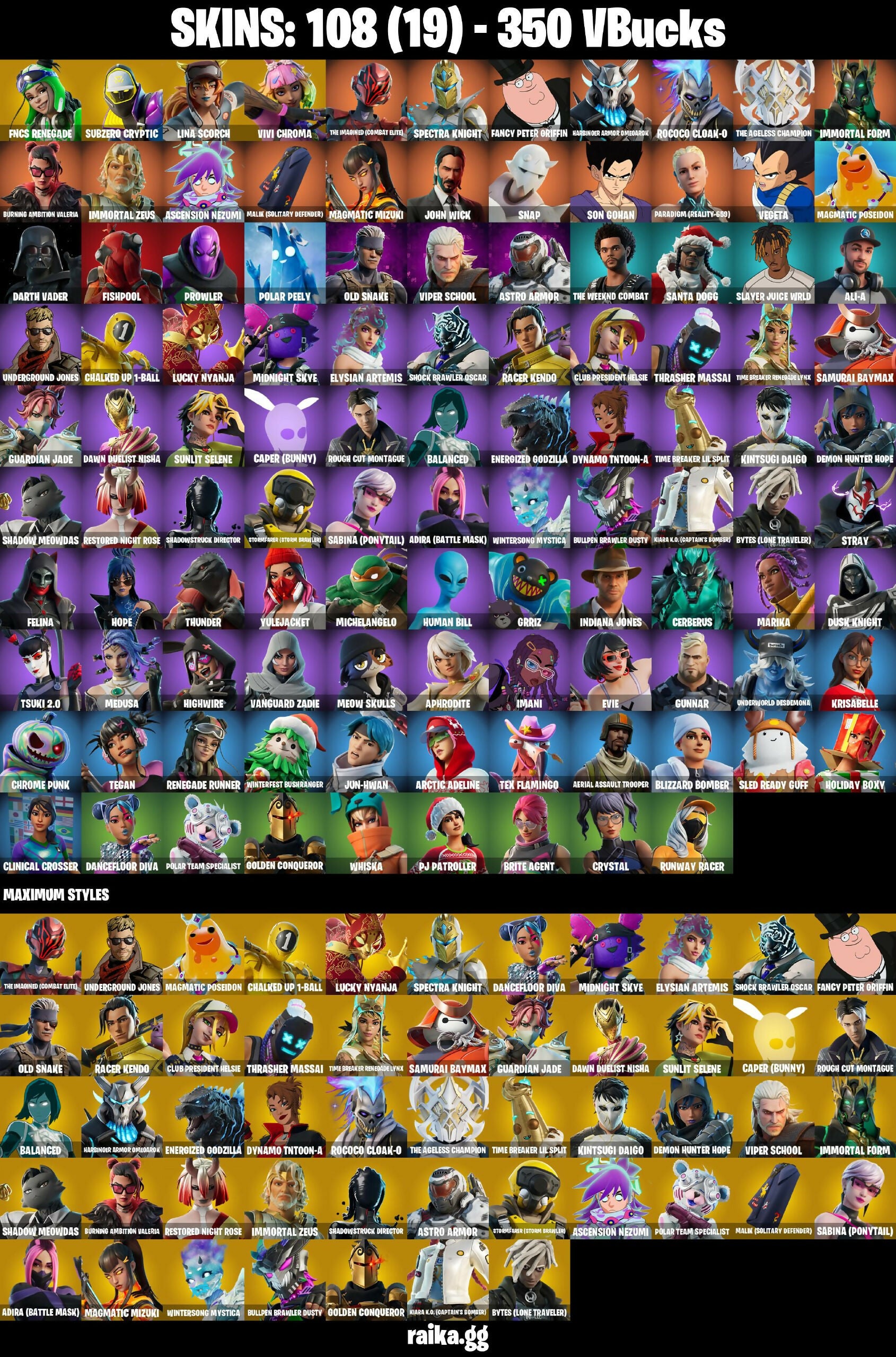[PC/XBOX/NIT] 108 skins | Aerial Assault Trooper | FNCS Renegade | Subzero Cryptic | Lina Scorch | Vivi Chroma | The Imagined (Combat Elite) | Spectra Knight | 350 VB