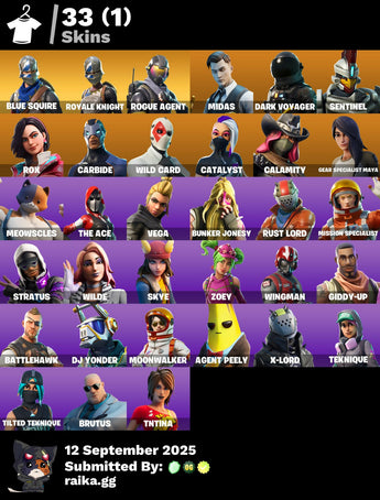 💥🌟💥 EXCLUSIVE OFFER 💥🌟💥 33 SKINS 💎 BLUE SQUIRE 💎 ROYALE KNIGHT 💎 ROGUE AGENT 💎 MIDAS 💎 DARK VOYAGER 💎 SENTINEL 💎 ROX 💎 CARBIDE 💎 WILD CARD 💎 CATALYST 💎 CALAMITY