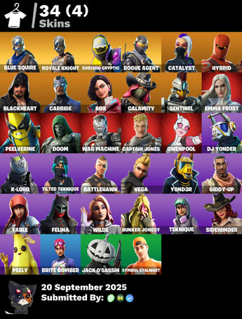 💥🌟💥 EXCLUSIVE OFFER 💥🌟💥 34 SKINS 💎 BLUE SQUIRE 💎 ROYALE KNIGHT 💎 SUBZERO CRYPTIC 💎 ROGUE AGENT 💎 CATALYST 💎 HYBRID 💎 BLACKHEART 💎 CARBIDE 💎 ROX 💎 CALAMITY