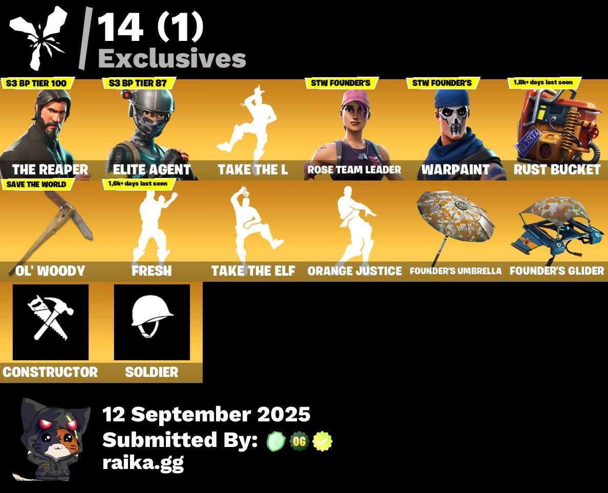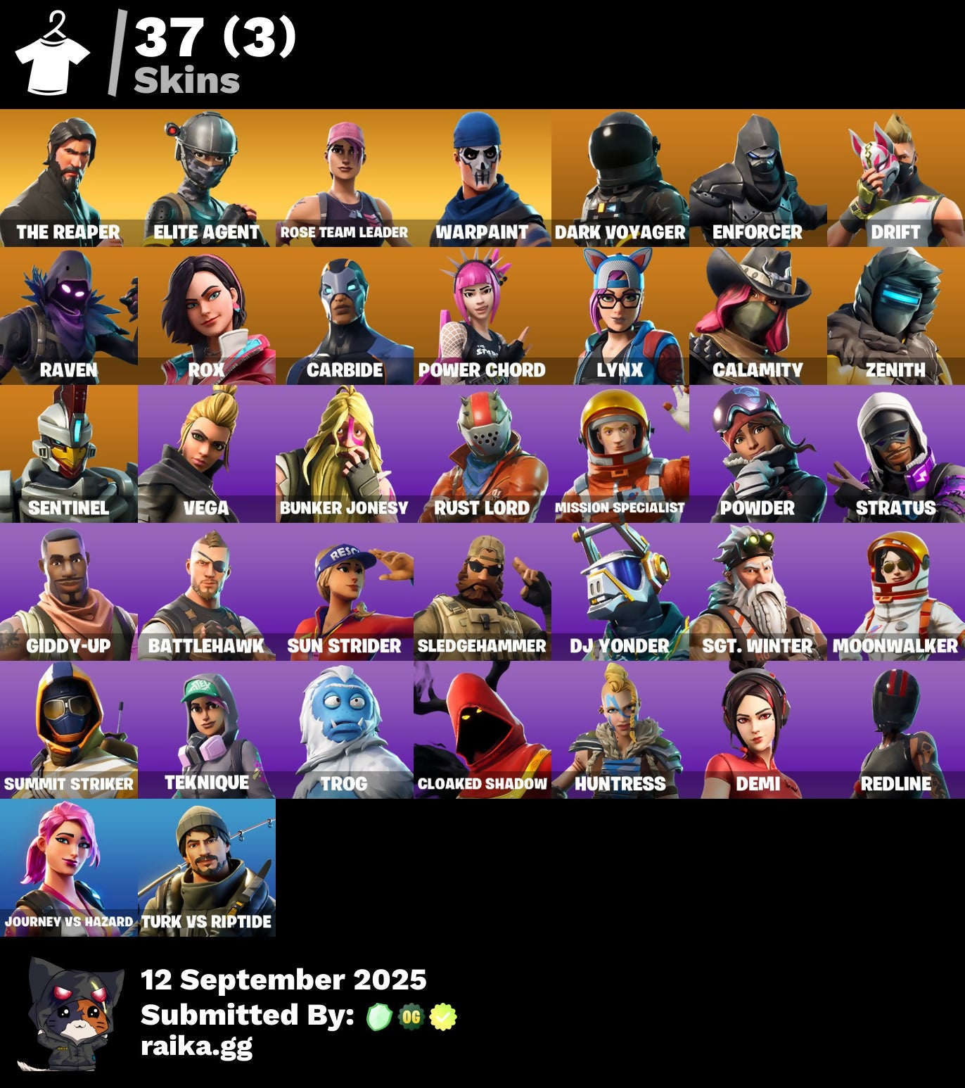 💥🌟💥 EXCLUSIVE OFFER 💥🌟💥 37 SKINS 💎 OG STW 💎 THE REAPER 💎 ELITE AGENT 💎 DARK VOYAGER 💎 ENFORCER 💎 DRIFT 💎 RAVEN 💎 ROX 💎 CARBIDE 💎 POWER CHORD 💎 LYNX 💎 CALAMITY