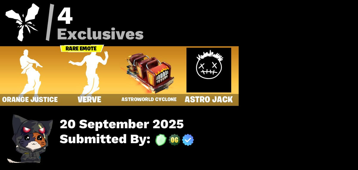 Outfits: Black Knight | Sparkle Specialist | The Reaper | Blue Squire | Royale Knight | Elite Agent | Omega (stage 5) | Rogue Agent | Zenith (Stage 4) | Lynx (Stage 4 - No Ponytail) | Drift Stage 5 | Ice King (Gold) | Carbide Armor Stage 5 | Rococo Cloak-o | Magmatic Mizuki | Valor | Gear Specialist Maya | Hime | Raven | Midas | Leviathan | The Prisoner | Love Ranger | Era | Dark Voyager | Wukong | The Visitor | Frostbite | Coruscant Guard | Clone Trooper | Darth Maul | Wolf Pack Trooper | Ahsoka's Clone Trooper |