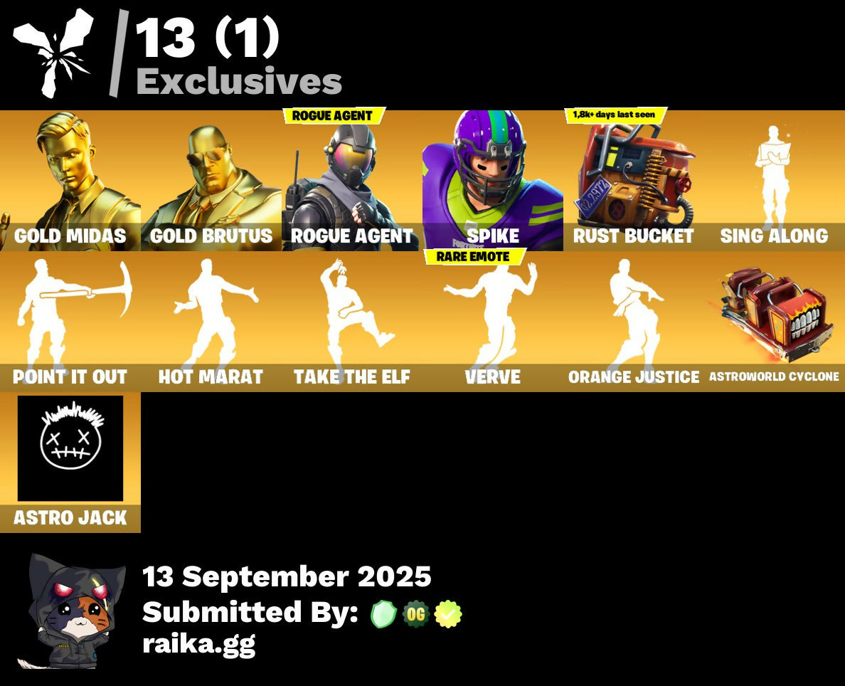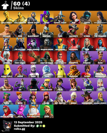 💥🌟💥 EXCLUSIVE OFFER 💥🌟💥 60 SKINS 💎 GOLD MIDAS 💎 GOLD BRUTUS 💎 ROGUE AGENT 💎 SPIKE 💎 ETERNAL KNIGHT 💎 ROX 💎 ZENITH 💎 GEAR SPECIALIST MAYA 💎 MENACE 💎 RUIN