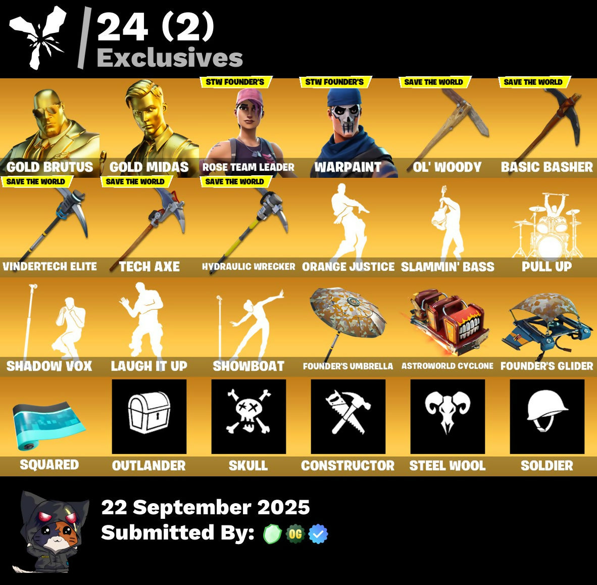 💥🌟💥 EXCLUSIVE OFFER 💥🌟💥 64 SKINS 💎 OG STW 💎 GOLD BRUTUS 💎 GOLD MIDAS 💎 VALOR 💎 DRIFT 💎 LYNX 💎 CALAMITY 💎 OMEGA 💎 HYBRID 💎 ZENITH 💎 THE VISITOR 💎 BLACKHEART