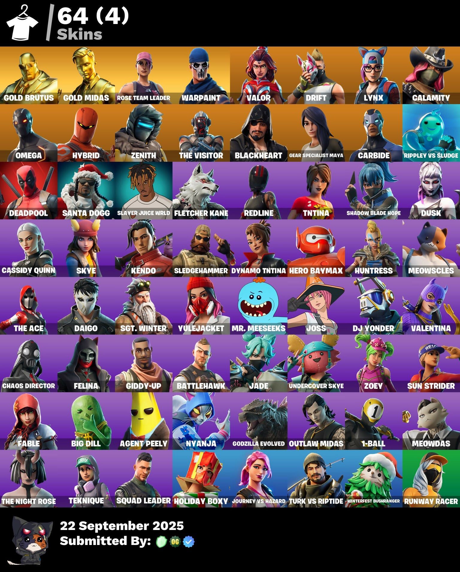 [PSN/XBOX/PC] 64 SKINS | OG STW | GOLD BRUTUS | GOLD MIDAS | VALOR | DRIFT | LYNX | CALAMITY | OMEGA | HYBRID | ZENITH | THE VISITOR | BLACKHEART