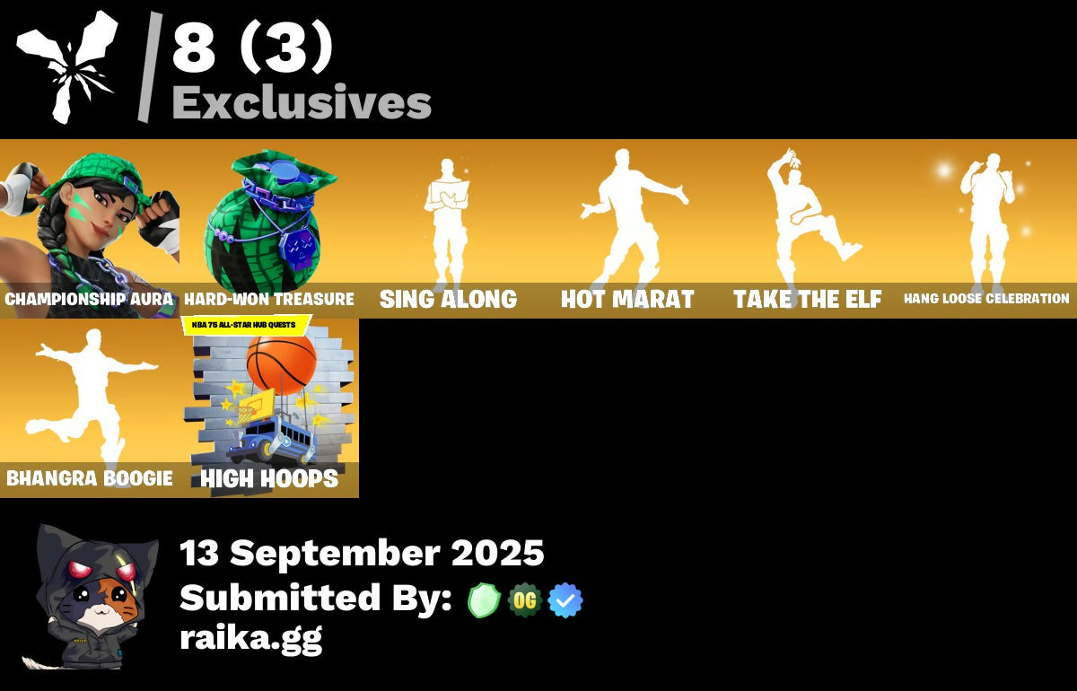 Outfits: Black Knight | Sparkle Specialist | The Reaper | Blue Squire | Royale Knight | Elite Agent | Omega (stage 5) | Rogue Agent | Zenith (Stage 4) | Lynx (Stage 4 - No Ponytail) | Drift Stage 5 | Ice King (Gold) | Carbide Armor Stage 5 | Rococo Cloak-o | Magmatic Mizuki | Valor | Gear Specialist Maya | Hime | Raven | Midas | Leviathan | The Prisoner | Love Ranger | Era | Dark Voyager | Wukong | The Visitor | Frostbite | Coruscant Guard | Clone Trooper | Darth Maul | Wolf Pack Trooper | Ahsoka's Clone Trooper |