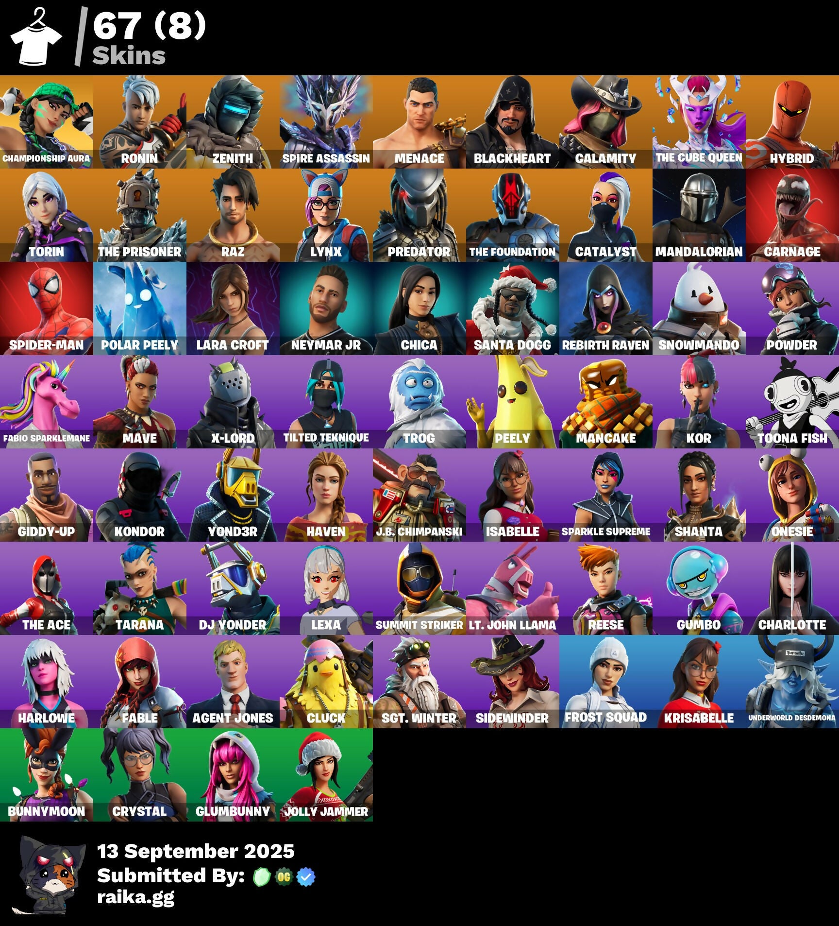 💥🌟💥 EXCLUSIVE OFFER 💥🌟💥 67 SKINS 💎 CHAMPIONSHIP AURA 💎 RONIN 💎 ZENITH 💎 SPIRE ASSASSIN 💎 MENACE 💎 BLACKHEART 💎 CALAMITY 💎 THE CUBE QUEEN 💎 HYBRID 💎 TORIN