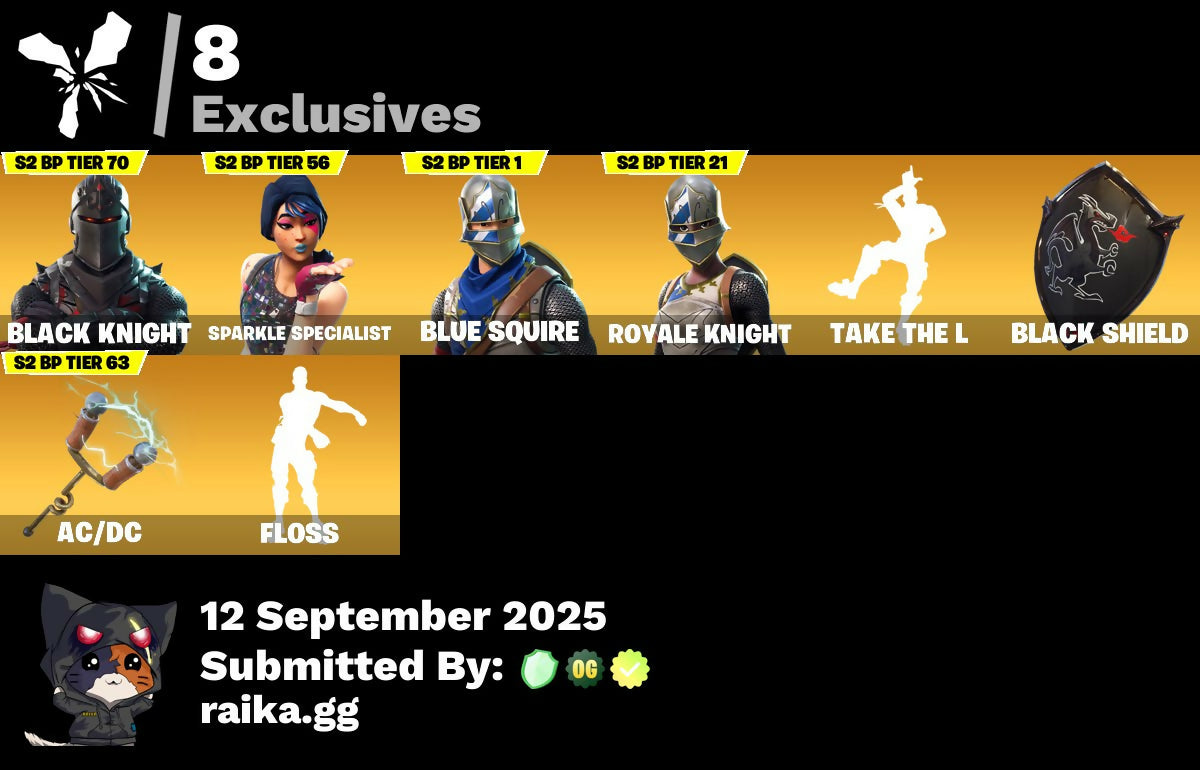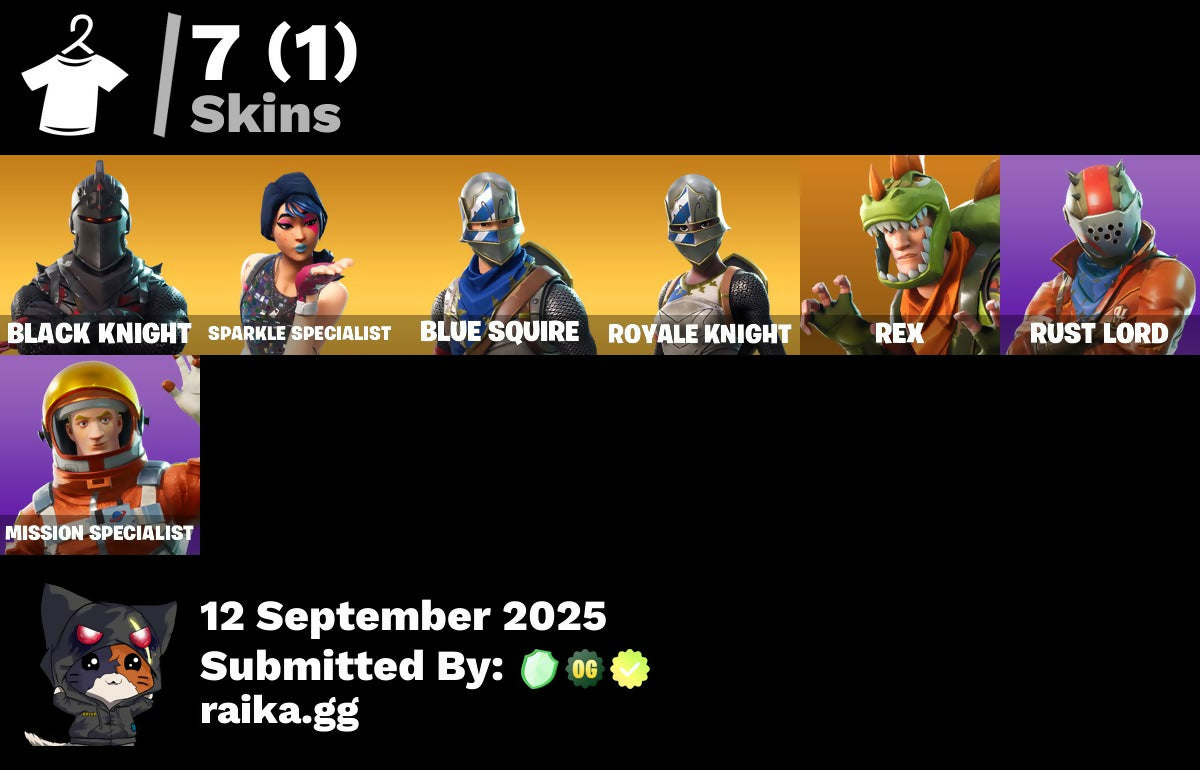 💥🌟💥 EXCLUSIVE OFFER 💥🌟💥 7 SKINS 💎 BLACK KNIGHT 💎 SPARKLE SPECIALIST 💎 BLUE SQUIRE 💎 ROYALE KNIGHT 💎 REX 💎 RUST LORD 💎 MISSION SPECIALIST 💎 BLACK SHIELD 💎 SCALY