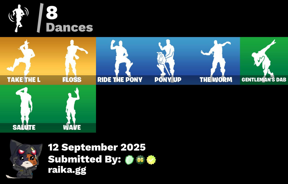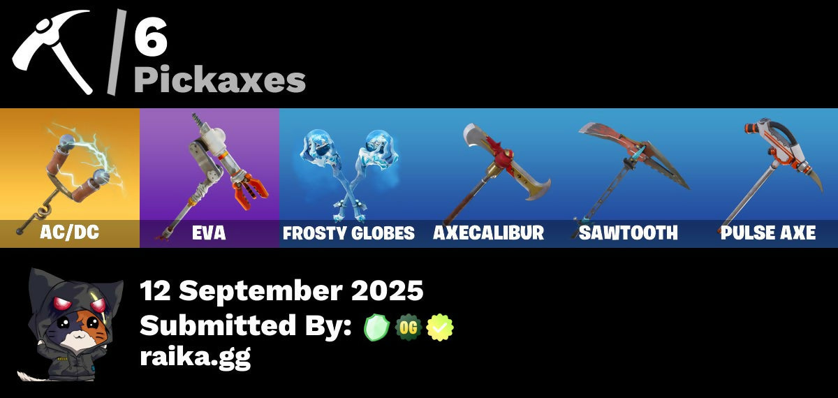 Ac/Dc, Axecalibur, Black Knight, Black Shield, Blue Squire, Eva, Floss, Frosty Globes, Gentleman's Dab, Mission Specialist, Pony Up, Pulse Axe, Rex, Ride The Pony, Royale Knight, Rust Lord, Salute, Sawtooth, Sparkle Specialist, Take The L, The Worm, Wave