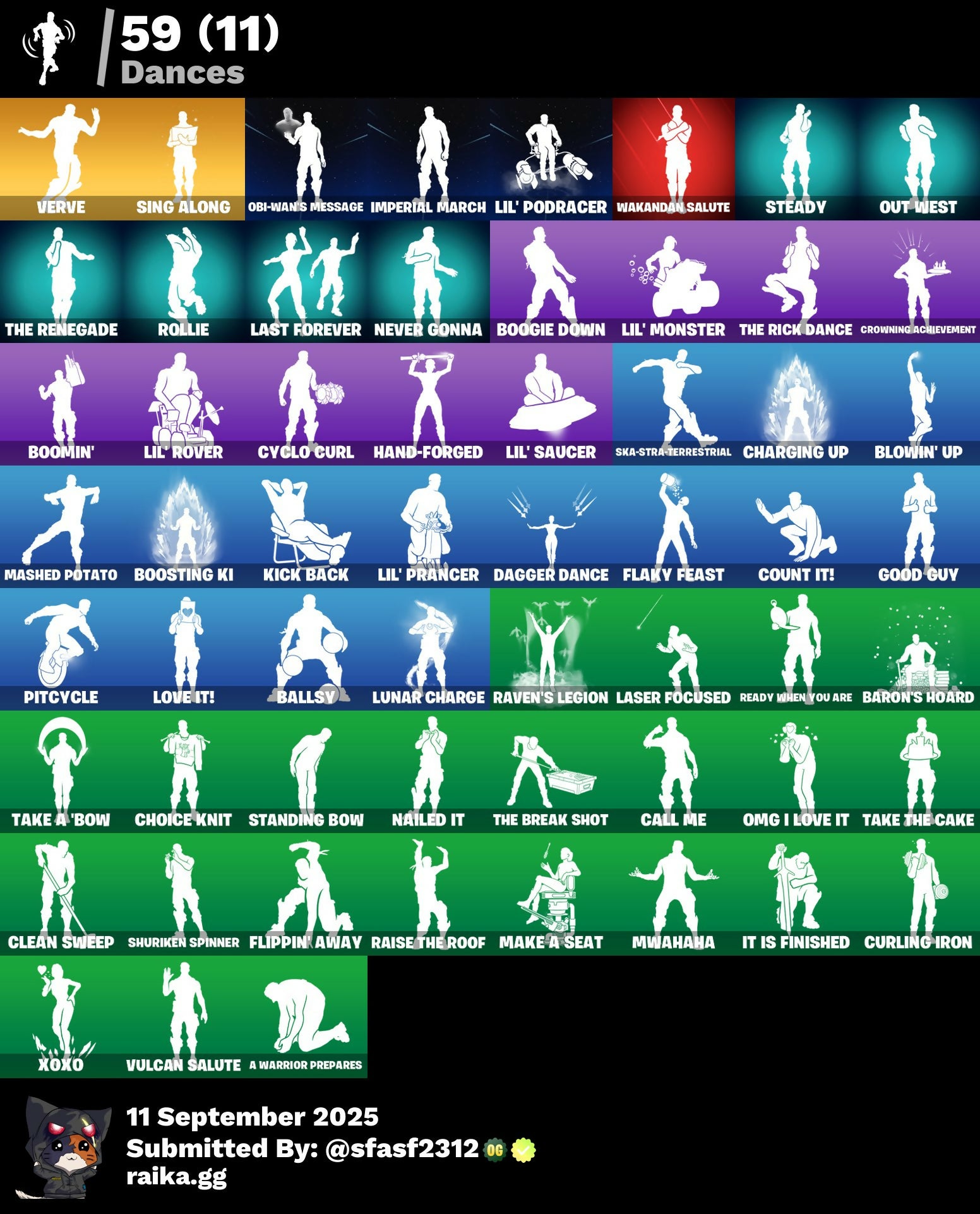 Outfits: Black Knight | Sparkle Specialist | The Reaper | Blue Squire | Royale Knight | Elite Agent | Omega (stage 5) | Rogue Agent | Zenith (Stage 4) | Lynx (Stage 4 - No Ponytail) | Drift Stage 5 | Ice King (Gold) | Carbide Armor Stage 5 | Rococo Cloak-o | Magmatic Mizuki | Valor | Gear Specialist Maya | Hime | Raven | Midas | Leviathan | The Prisoner | Love Ranger | Era | Dark Voyager | Wukong | The Visitor | Frostbite | Coruscant Guard | Clone Trooper | Darth Maul | Wolf Pack Trooper | Ahsoka's Clone Trooper |