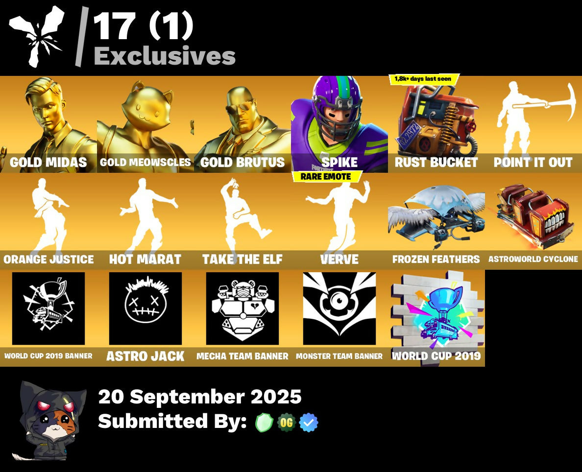 💥🌟💥 EXCLUSIVE OFFER 💥🌟💥 81 SKINS 💎 GOLD MIDAS 💎 GOLD MEOWSCLES 💎 GOLD BRUTUS 💎 SPIKE 💎 JOHN WICK 💎 RUIN 💎 CATALYST 💎 FADE 💎 HYBRID 💎 BLACKHEART 💎 THE ICE KING