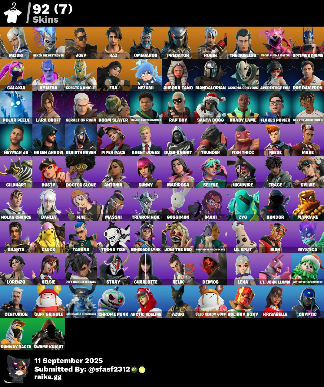 💥🌟💥 EXCLUSIVE OFFER 💥🌟💥 92 SKINS 💎 MIZUKI 💎 RENZO THE DESTROYER 💎 JOEY 💎 RAZ 💎 OMEGAROK 💎 PREDATOR 💎 RONIN 💎 THE AGELESS 💎 MECHA CUDDLE MASTER 💎 OPTIMUS PRIME
