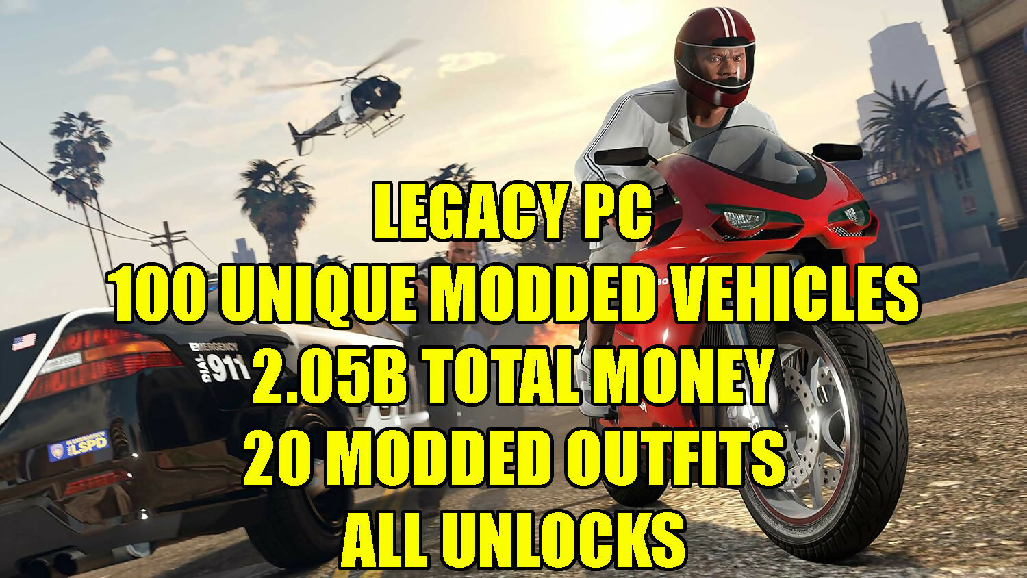 LEGACY PC | 100 UNIQUE MODDED VEHICLES + 2.05B TOTAL MONEY | 20 MODDED OUTFITS | FAST RUN | ALL UNLOCKS | 1B FROZEN KD