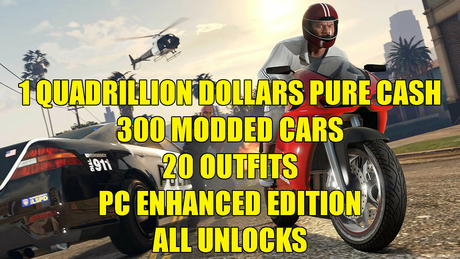 1 QUADRILLION DOLLARS PURE CASH + 300 MODDED CARS + 20 OUTFITS | PC | ENHANCED EDITION | ALL UNLOCKS | FAST RUN + MAX STATS