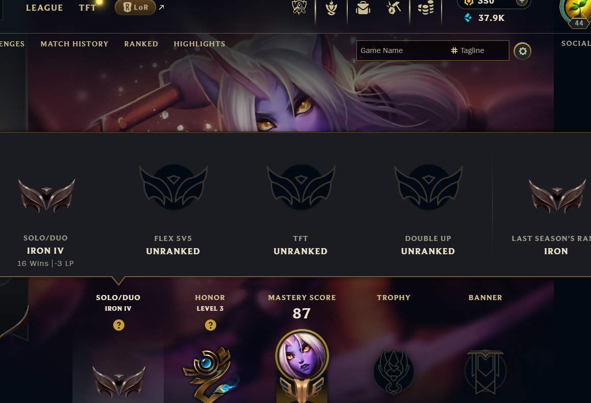 ⚡ 【 OCE】 ⸱ Iron IV 21.1 % 68 GAMES WR ⚡ | Hand - ( leveled + De-ranked ✌️ ) | Unverified ✅ | 37905 BE 💵 | 350 RP 💰 | RecoveryInfo | Untouched-loot |