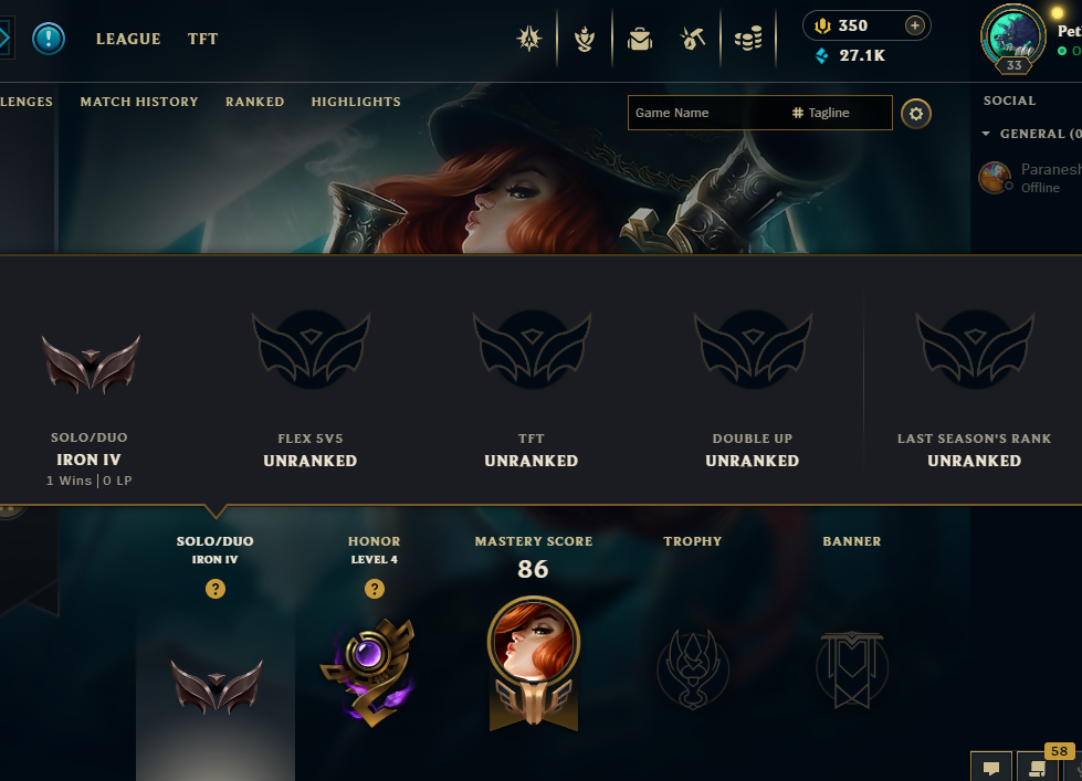 ⚡ 【 ME 】 ⸱ Iron IV 2% WR +39Games ⚡ | Hand - ( leveled + De-ranked ✌️ ) | Unverified ✅ | 27159 BE ? | 350 RP ? | Untouched-Loot ? | Check Description ?