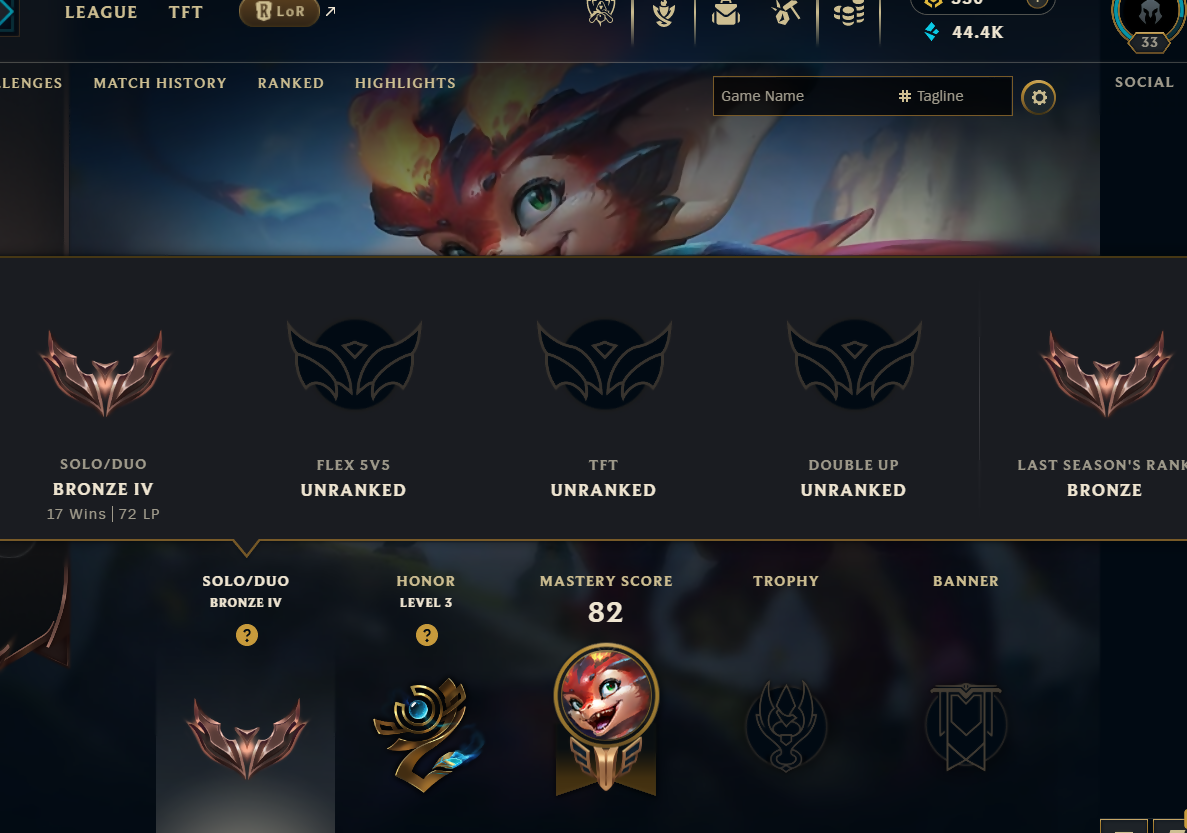 ⚡ 【 NA】 ⸱ BRONZE IV ⚡ | Hand - ( leveled + De-ranked ✌️ ) | Verified ✅ | 44405 BE ? | 350 RP ? | Untouched-Loot ? | Check Description ?