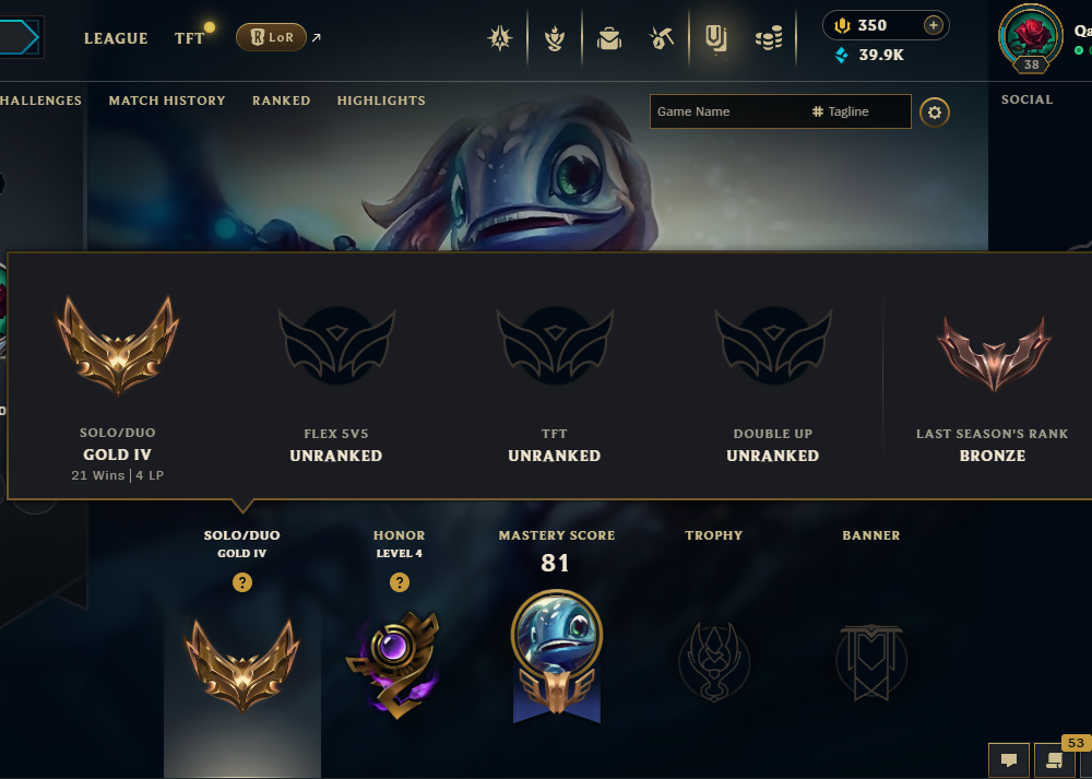 ⚡ 【 NA 】 ⸱ Gold IV 50% WR ⚡ | Hand - ( leveled + De-ranked ✌️ ) | Unverified ✅ | 39950 BE ? | 350 RP ? | Untouched-Loot ? | Check Description ?